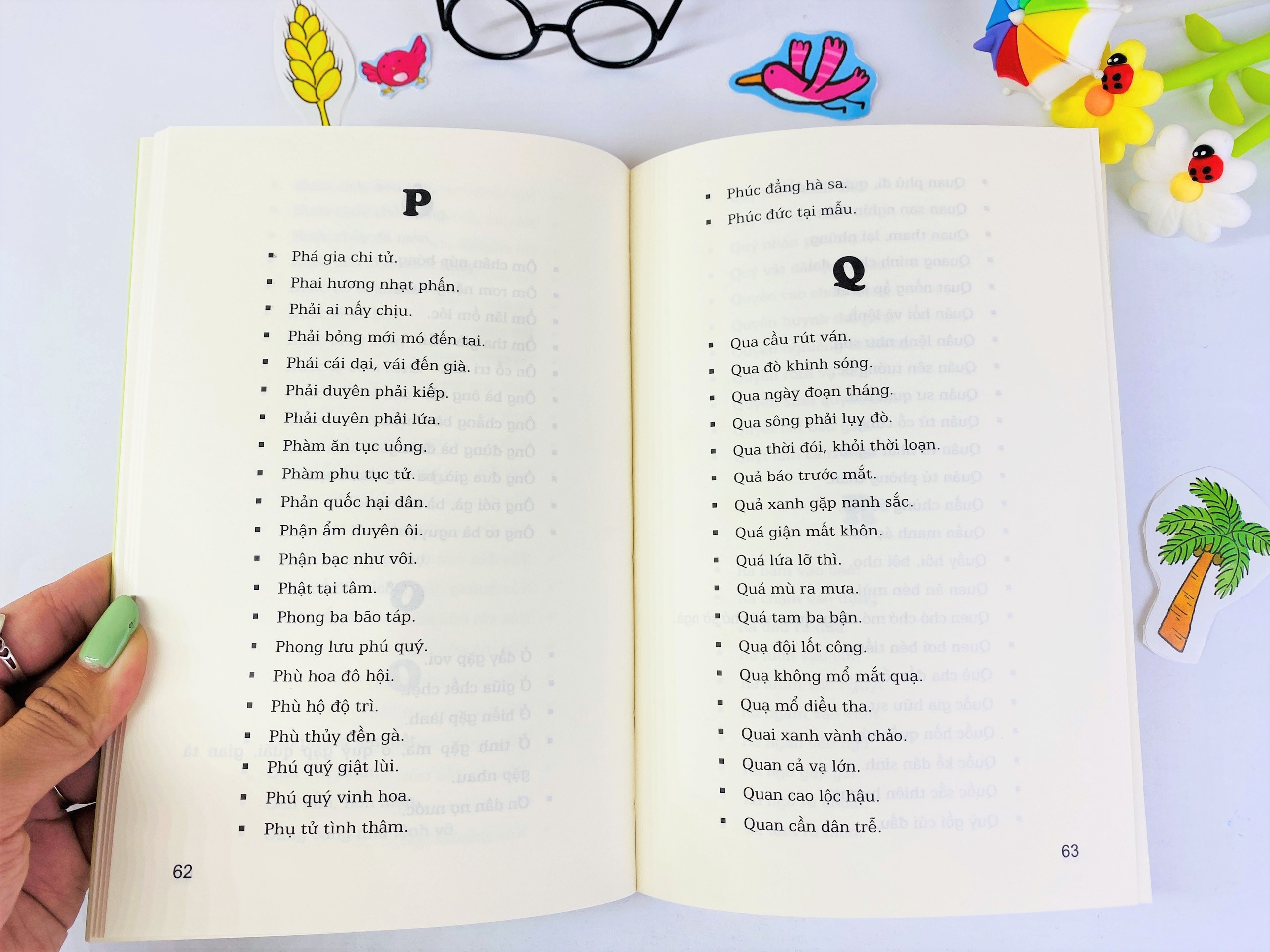 Ông cha ta để lại rất nhiều cụm từ, câu nói, bài thơ ngắn gọn, giản dị, giàu nhịp điệu và hình ảnh... Thuộc những cụm từ ấy, ta giàu thêm vốn từ, ta biết thêm kinh nghiệm, và tâm hồn ta cũng “giàu có” rất nhiều. Đó là những câu thành ngữ, tục ngữ, ca dao, dân ca... Cuốn sách này lựa ra những thành ngữ và tục ngữ thường gặp và dễ hiểu với bạn đọc trên 3 tuổi, thêm chú dẫn những khái niệm cổ và khó, thêm các cụm từ gần gặn... giúp các bạn đọc ít mà hiểu nhiều.