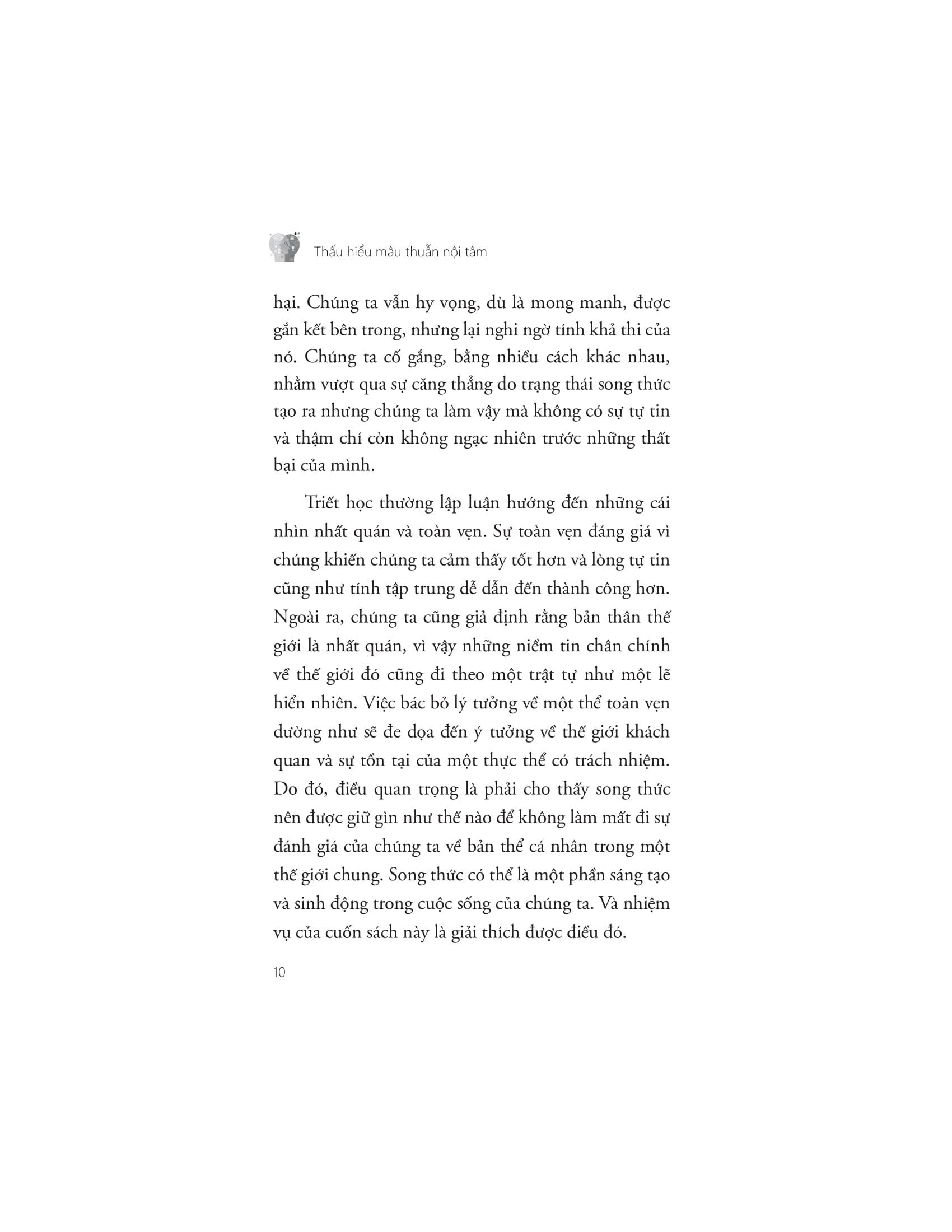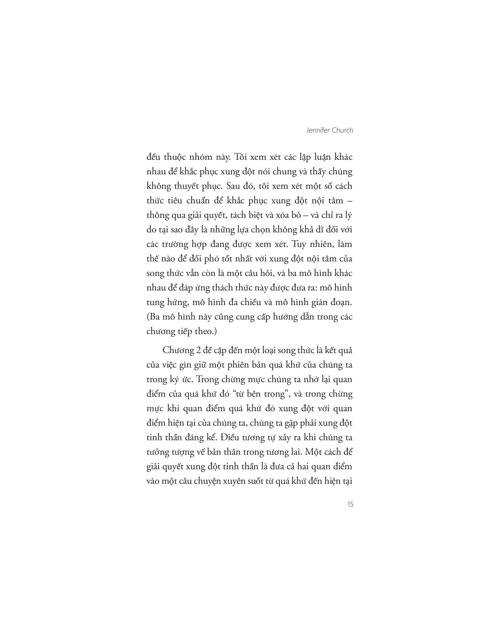 Tuy nhiên, trong cuốn sách “Thấu hiểu mâu thuẫn nội tâm” – tác giả Jennifer Church lập luận: Mâu thuẫn nội tâm có thể là một điều tốt, giúp chúng ta tự phản ánh và hiểu rõ hơn về bản thân, giá trị và niềm tin của m.ình. Cuốn sách này mô tả một vài kiểu mẫu của “song thức” hay “ý chí kép” và giải thích làm thế nào để trạng thái này được duy trì.