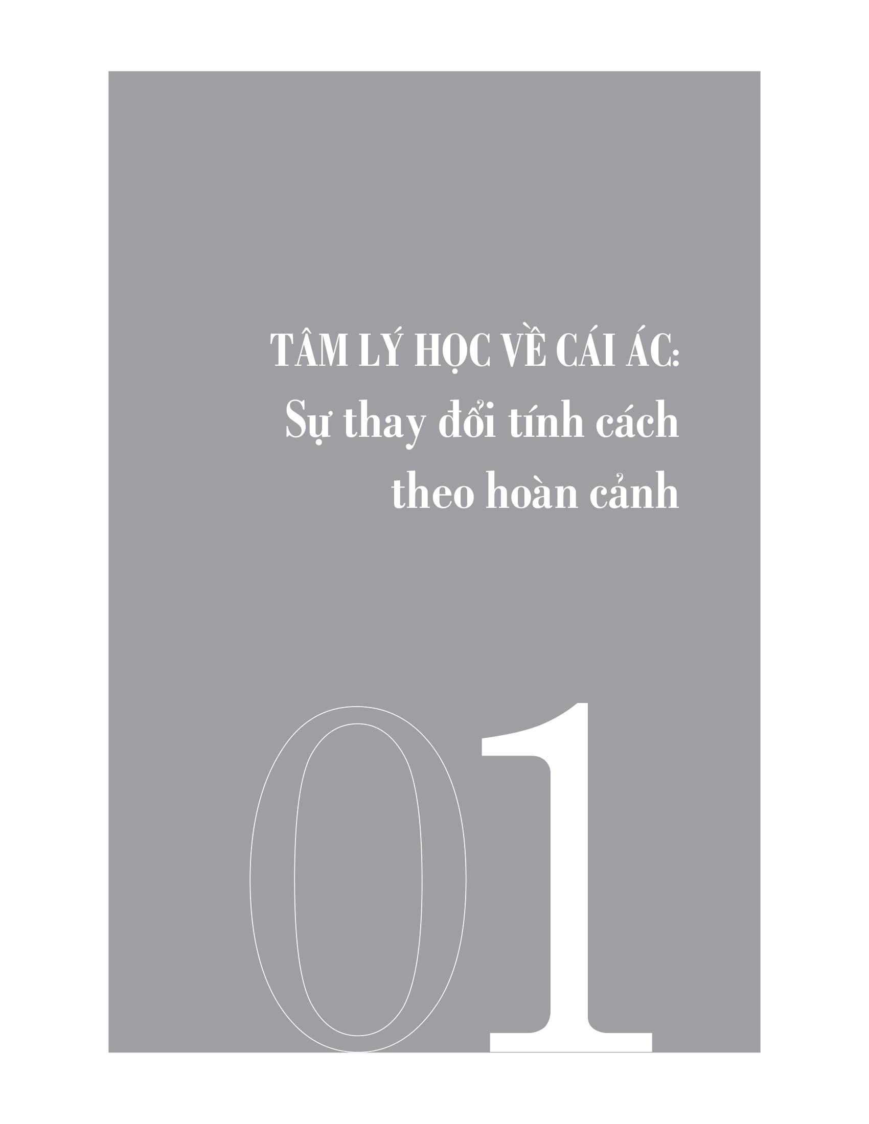 “Thiện & Ác” mở đầu bằng một chương phác thảo sự biến đổi của tính cách con người, về những người tốt và lương thiện bỗng quay sang thực hiện những hành vi xấu xa, thậm chí là những điều độc ác và khủng khiếp. Chương sách đặt ra câu hỏi cơ bản: Chúng ta thực sự hiểu rõ m.ình đến mức nào? Chúng ta có thể tự tin đến đâu khi dự đoán những gì m.ình sẽ làm hoặc không làm trong những tình huống mà bản thân chưa từng gặp phải? Liệu chúng ta có giống như thiên thần mà Chúa yêu mến - Lucifer, bị cám dỗ và làm những điều không tưởng với người khác hay không?