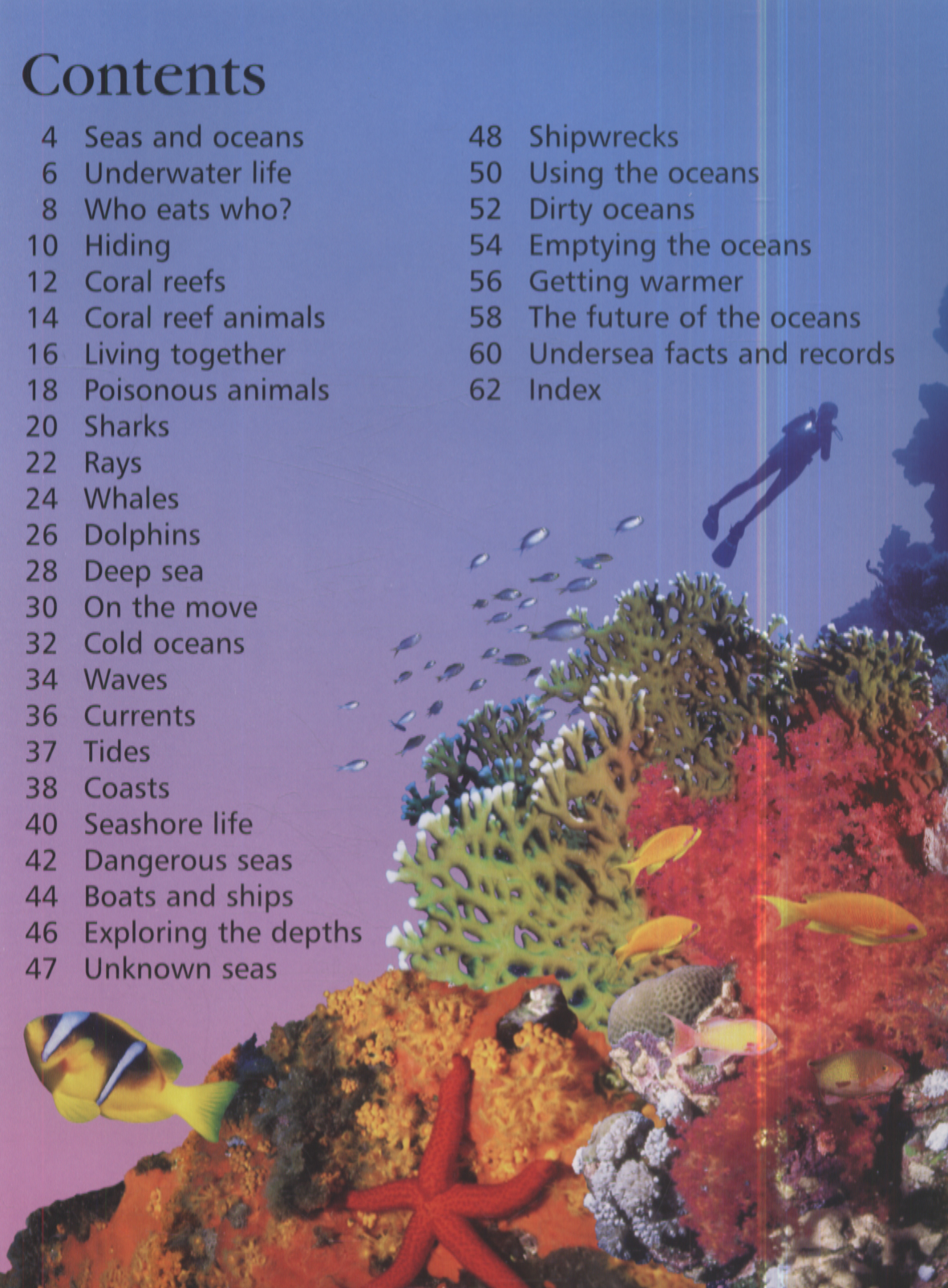 A fact-packed introduction to the wonders of the sea with easy-to-read text and superb photographs. Subjects include coral reefs, whales and dolphins, undersea exploration and environmental threats. With internet links to exciting websites, including a virtual tour of the seabed and downloadable images of weird and wonderful sea creatures.