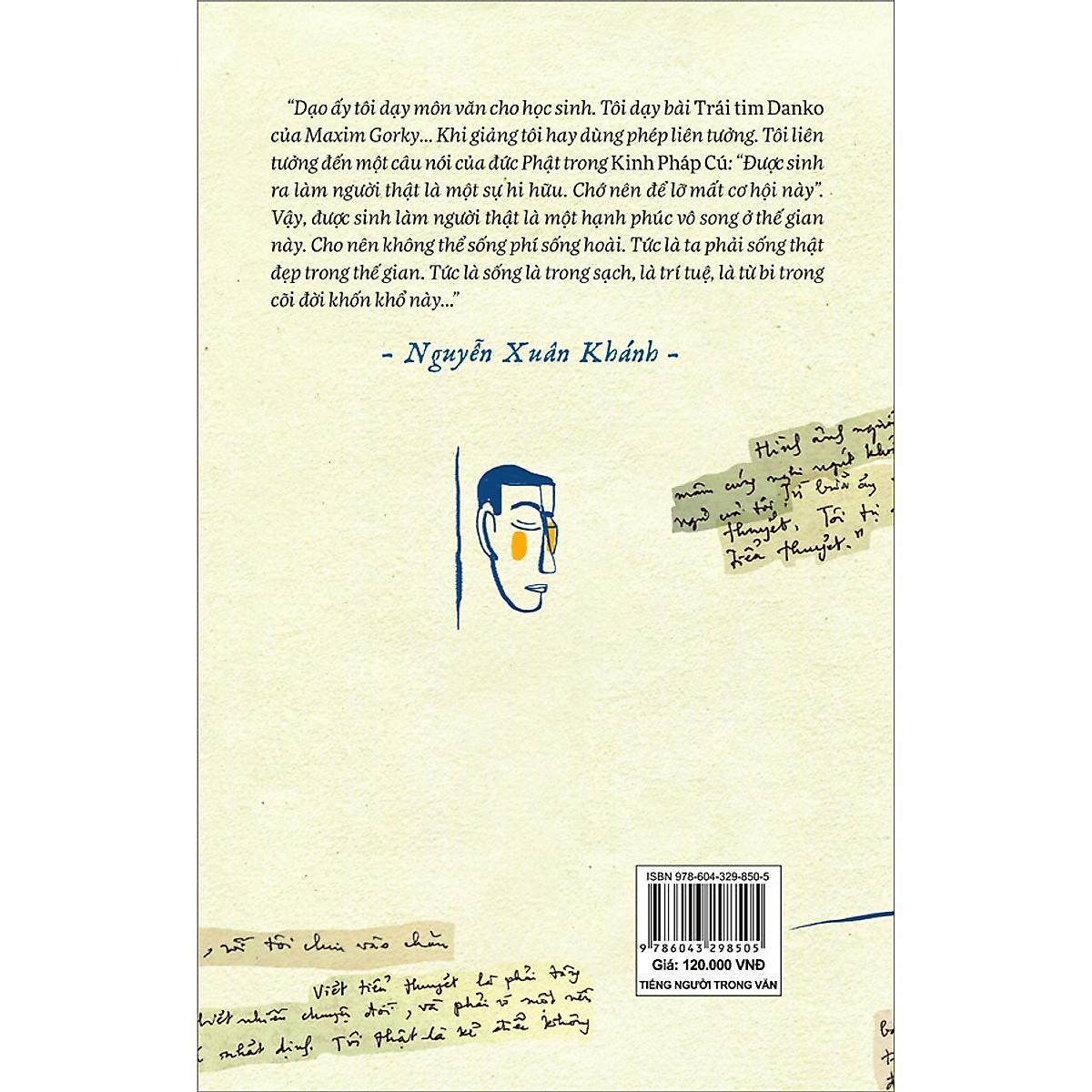 Đời văn Nguyễn Xuân Khánh không hề đơn giản, nên để ông tự nói lên được những điều sâu kín đó không phải dễ dàng. Đến tận bây giờ, sau khi khởi bút trên dưới chục năm, từ những bài viết lẻ cấu trúc lại, cuốn sách này mới có cơ hội ra mắt bạn đọc. Những điều “nhạy cảm” được kể lại chân thực nhất, với giọng kể của một người văn đã trải hơn nửa thế kỷ say mê viết lách, phải trả giá bằng máu và nước mắt của mình cho tác phẩm.