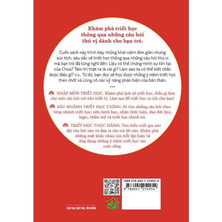 Đây là một cuốn sách sâu sắc và thú vị, giúp bạn đọc khám phá triết học thông qua các câu hỏi kích thích tư duy. Sách chia ra nhiều phần nhỏ, đi từ lý luận đến thực tiễn, để độc giả có thể học các khái niệm triết học cốt lõi và củng cố kỹ năng tư duy phản biện của mình. Các kiến thức được trình bày đơn giản, súc tích thông qua những câu hỏi thú vị, như: Liệu có thể chứng minh sự tồn tại của Chúa? Tâm trí thật ra là cái gì? Làm thế nào chúng ta có thể chắc chắn về bất cứ điều gì?
