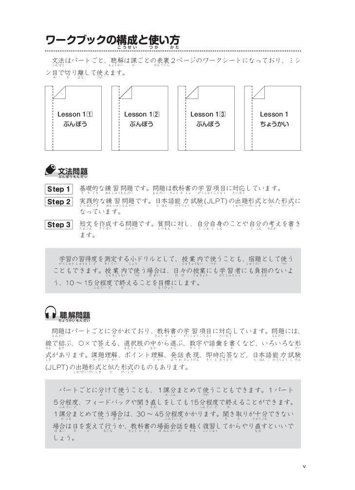 Giáo trình được biên soạn nhằm giúp người học giao tiếp bằng tiếng Nhật tốt hơn trong các hoạt động xã hội. Các tình huống học tập trong giáo trình là những tình huống thường được sử dụng để giao tiếp trên thực tế, được lựa chọn từ các lĩnh vực trong đời sống sinh hoạt, trường học và xã hội.