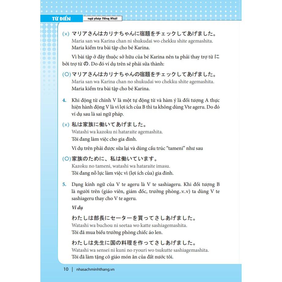 Thấu hiểu được vấn đề này chúng tôi đã dày công tìm hiểu và biên soạn cuốn giáo trình “Từ điển ngữ pháp tiếng Nhật”. Cuốn giáo trình bao gồm khoảng 300 mẫu câu. Ở mỗi cấu trúc đều có công thức kết hợp, ý nghĩa, cách sử dụng, rất nhiều ví dụ sinh động sát thực tế kèm theo, và đặc biệt ở phần chú ý chúng ta sẽ được so sánh với những biểu hiện có ý nghĩa tương tự hoặc liên quan.