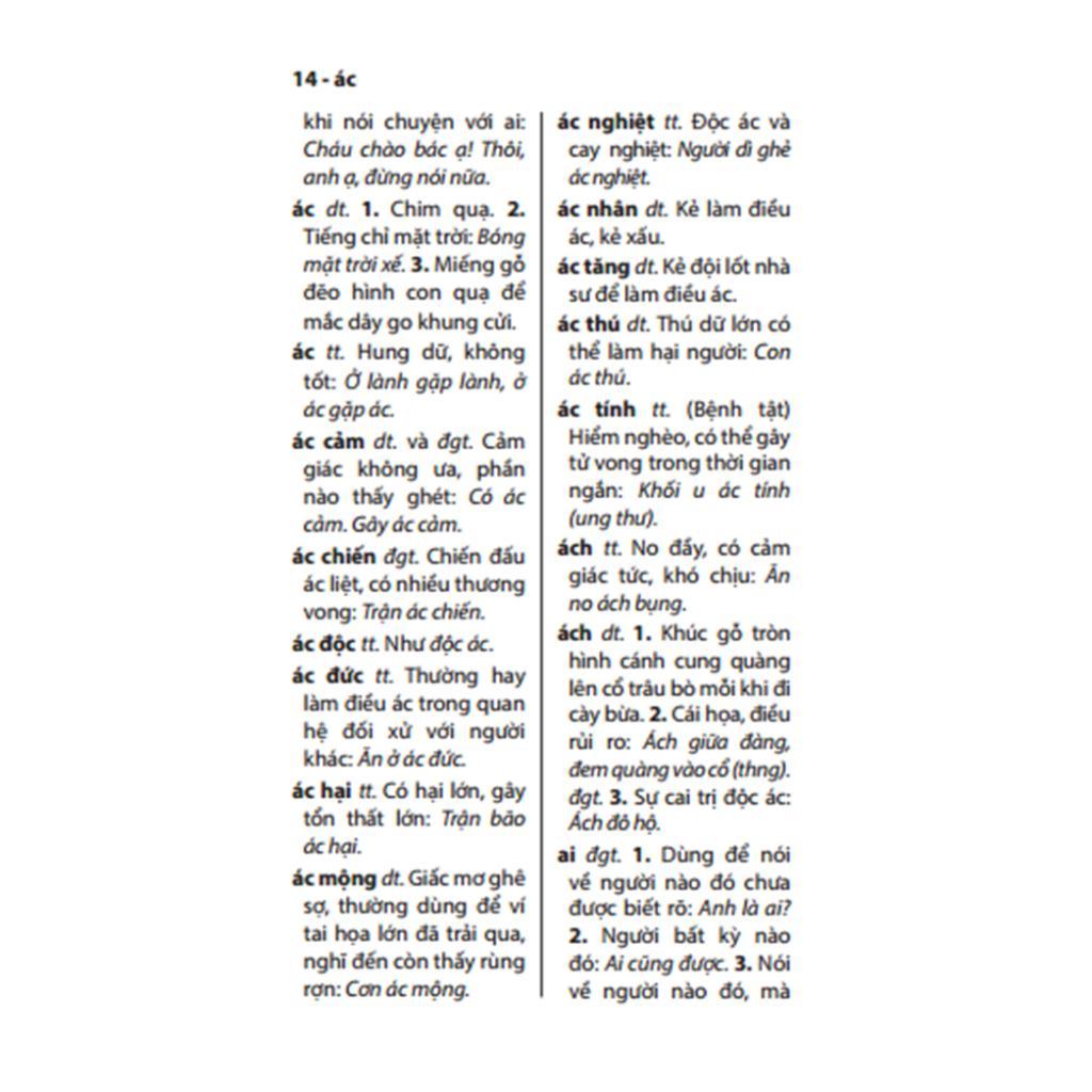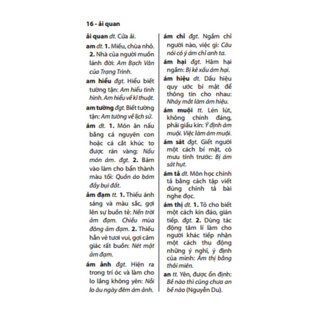 Mua tại TiktokCuốn TỪ ĐIỂN TIẾNG VIỆT THÔNG DỤNG được biên soạn theo tiêu chí ngắn gọn, súc tích. Cuốn Từ điển chỉ chọn lọc những từ, cụm từ thông dụng, quen thuộc nhất trong đời sống hàng ngày.