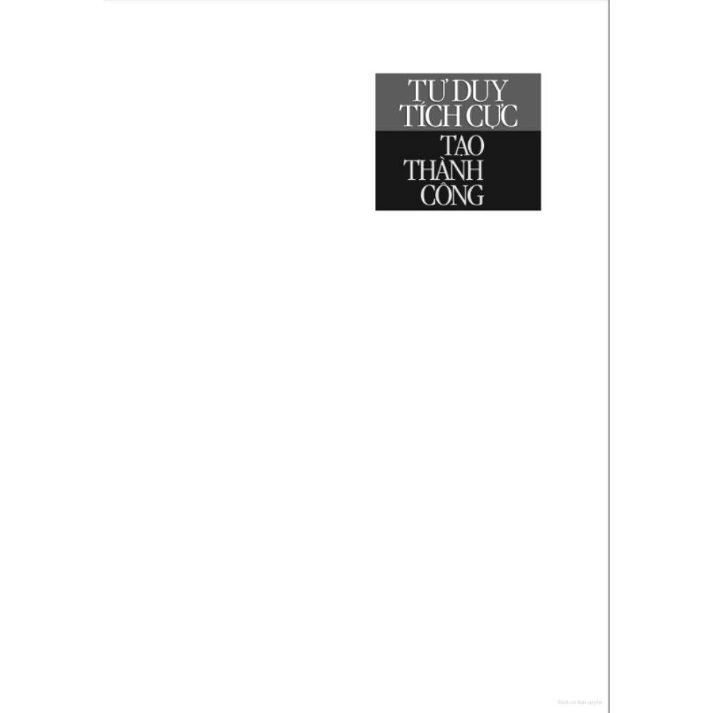 Tư duy tích cực tạo thành công giúp khẳng định một sự thật rằng: với thái độ tích cực, bất kỳ ai cũng có thể biến giấc mơ của mình thành hiện thực. Tư duy tích cực tạo thành công (Success Through a Positive Mental Attitude) trình bày cách vận dụng nguyên tắc PMA nhằm “giải thoát” bạn khỏi các vướng bận tinh thần và hướng đến mục tiêu bằng sự kiên trì và hành động tích cực.