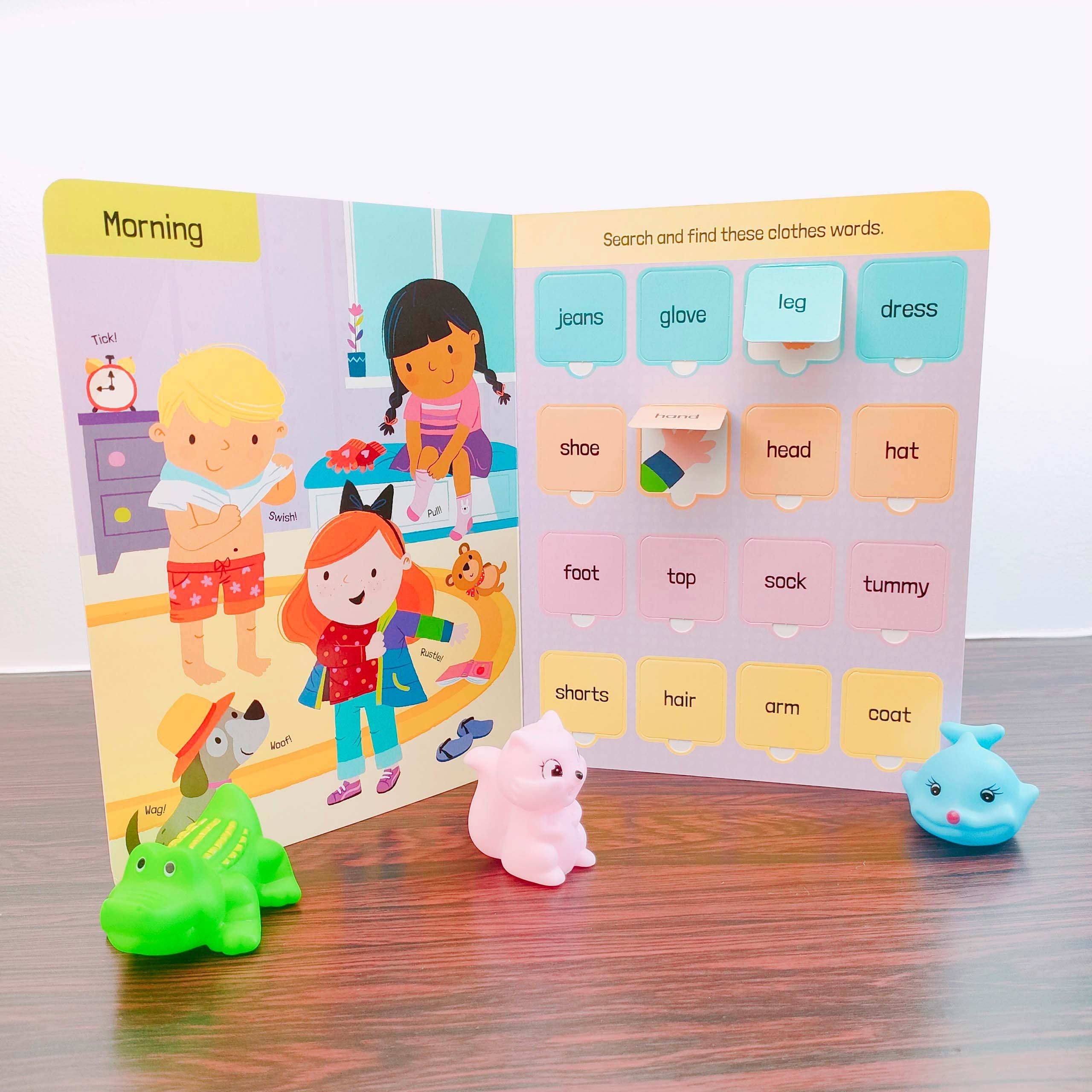 With 100 flaps to lift, pictures to find, and simple first words to learn, toddlers will build their vocabulary with confidence. The 100 child-friendly card lift-the-flaps are perfect for little hands to lift and look underneath, before finding the matching pictures on the scene opposite. Words printed on top of the flaps help to reinforce word and picture association making learning fun!