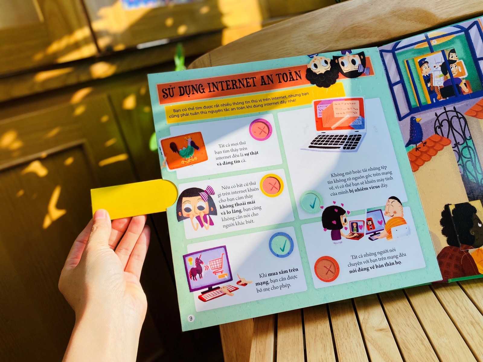 Sách được thiết kế dạng câu hỏi trắc nghiệm. Cha mẹ hướng dẫn trẻ đọc các câu hỏi, sau đó trẻ sẽ tư duy tìm kiếm đáp án, sau đó kéo thanh kéo trong sách để tìm đáp án chính xác. Qua việc trả lời Đúng hoặc Sai, cha mẹ dễ dàng hướng dẫn thêm cho trẻ về các tình huống thực tế tương tự tình huống trong sách, giúp trẻ có nhiều thông tin để ứng dụng tốt hơn trong cuộc sống.