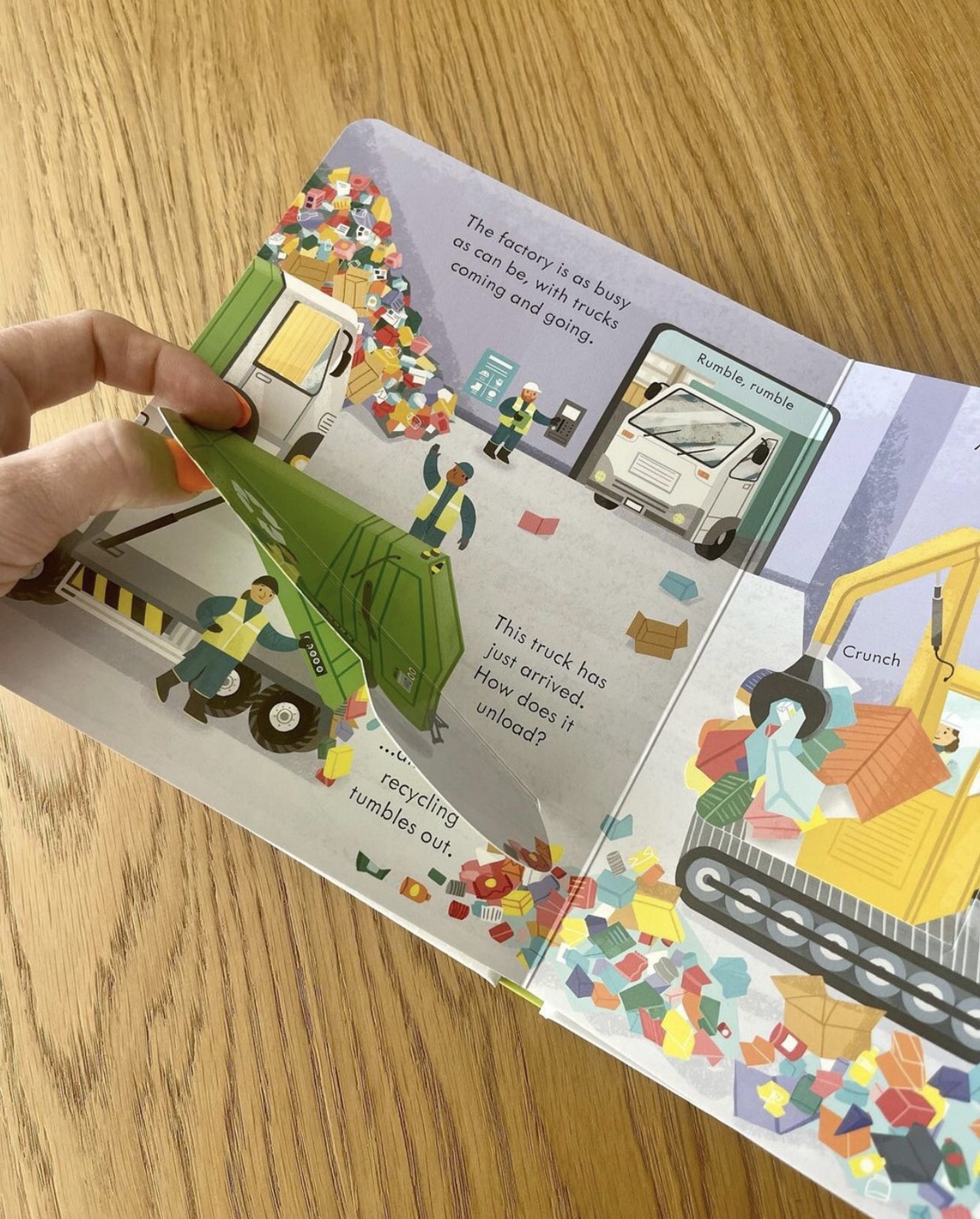 ✨Sách tương tác tiếng anh cho bé - Usborne Peep Inside how a recycling truck works