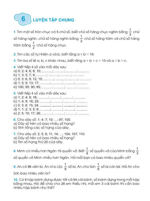 - Phần 1. Bài tập: Phần này bao gồm các bài tập được biên soạn bám sát theo các nội dung trong Chương trình Toán lớp 4 (Chương trình giáo dục phổ thông mới).