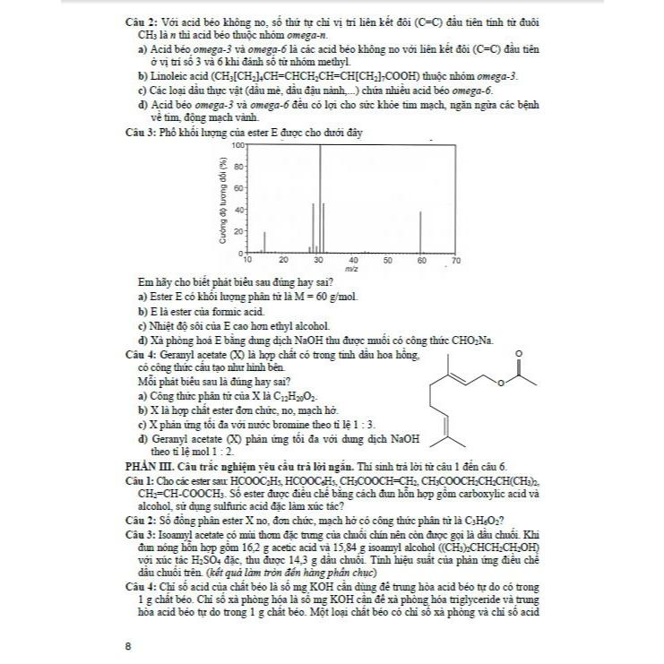 Sách - Tuyển tập đề thi tốt nghiệp THPT môn hóa học (Cấu trúc đề thi 2025) - HA Kỳ thi tốt nghiệp trung học phổ thông từ năm 2025 sẽ thực hiện theo Chương trình giáo dục phổ thông 2018 với một số thay đổi, đề thi tiếp cận đánh giá năng lực của thí sinh. Quy định về cấu trúc và định dạng đề thi tốt nghiệp trung học phổ thông từ năm 2025 dựa theo Quyết định 764/QĐ-BGDĐT của Bộ trưởng Bộ Giáo dục và Đào tạo ban hành ngày 08/3/2024. Mỗi đề thi môn Hóa học gồm 3 phần như sau: – Phần 1 gồm các câu hỏi ở dạng thức trắc nghiệm nhiều lựa chọn, mỗi câu có 4 phương án chọn 1 đáp án đúng. – Phần 2 gồm các câu hỏi ở dạng thức trắc nghiệm dạng Đúng/Sai. Mỗi câu hỏi có 4 ý, tại mỗi ý thí sinh lựa chọn đúng hoặc sai. – Phần 3 gồm các câu hỏi ở dạng thức trắc nghiệm trả lời ngắn. Thí sinh tô vào các ô tương ứng với đáp án của mình. Cuốn “Bộ đề ôn luyện thi tốt nghiệp trung học phổ thông môn Hóa học” do chúng tôi biên soạn là tài liệu hữu ích giúp học sinh lớp 12 rèn luyện kiến thức, kĩ năng Hóa học theo hướng phát triển phẩm chất và năng lực đáp ứng yêu cầu Chương trình giáo dục phổ thông 2018. Nội dung tài liệu gồm 3 phần: – Phần 1 gồm các bộ đề ôn luyện theo từng chủ đề – Phần 2 gồm các bộ đề ôn luyện thi tốt nghiệp THPT – Phần 3 đáp án và lời giải chi tiết Tài liệu được biên soạn giúp học sinh ôn luyện kiến thức, kĩ năng sau mỗi chủ đề và ôn luyện thi tốt nghiệp THPT môn Hóa học sắp tới. Chúc các em ôn tập tốt và đạt kết quả cao trong các kì thi sắp tới.