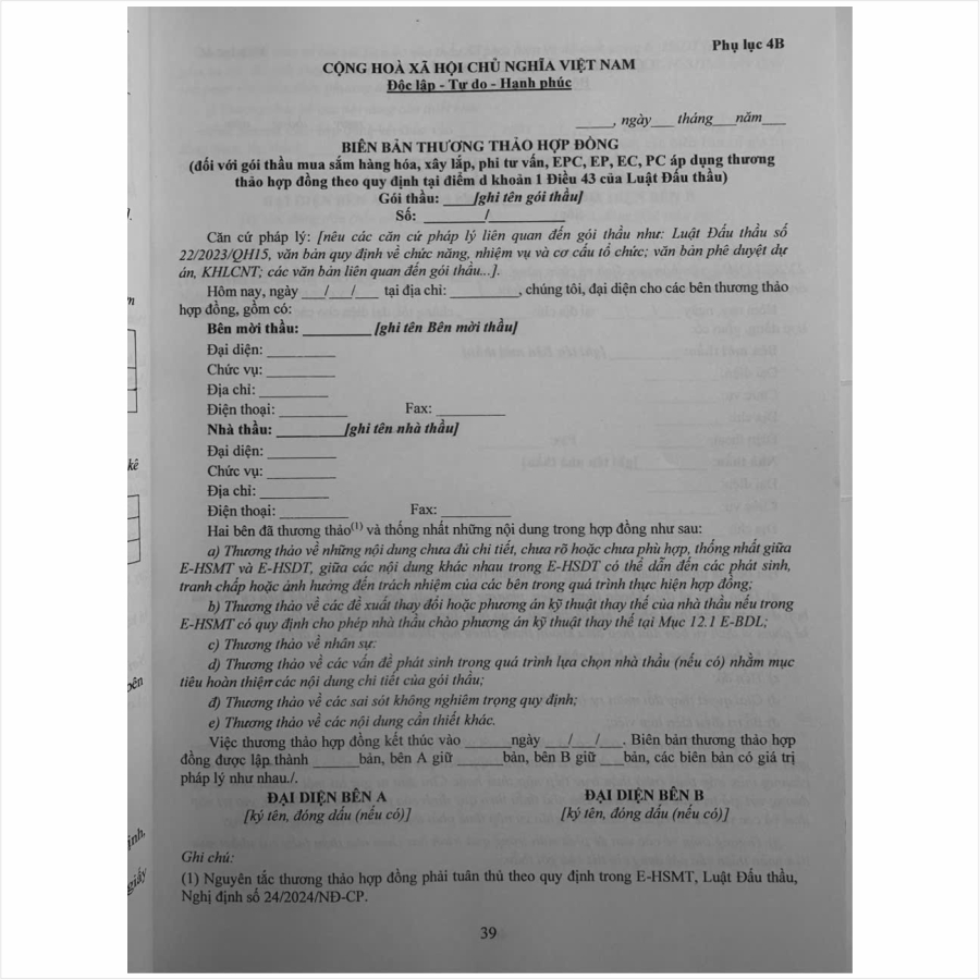 MẪU SỐ 4B – Hồ sơ mời thầu mua sắm hàng hóa qua mạng một giai đoạn hai túi hồ sơ