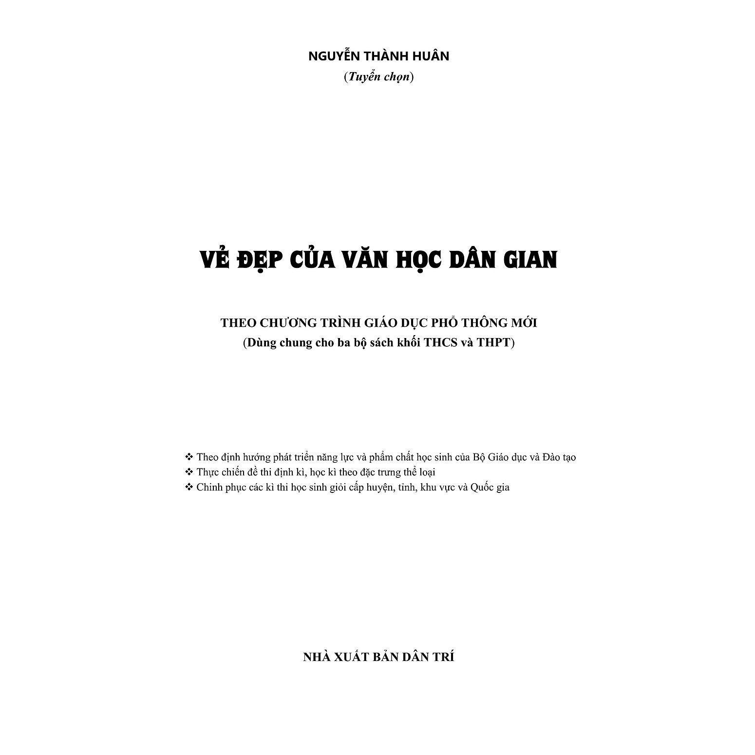 Nhằm đáp ứng nhu cầu tìm hiểu và khám phá về vẻ đẹp của các tác phẩm văn chương, chúng tôi đã sưu tầm và biên soạn cuốn sách VẺ ĐẸP CỦA VĂN HỌC DÂN GIAN (Dùng chung cho học sinh THCS và THPT). Hi vọng những đoạn trích, tác phẩm được tuyển chọn trong cuốn sách sẽ giúp quý độc giá có được sự tự tin, chủ động khi bước vào toà tháp ngôn từ để giải mã những ô cửa bí mật đằng sau lớp vỏ của ngôn từ.