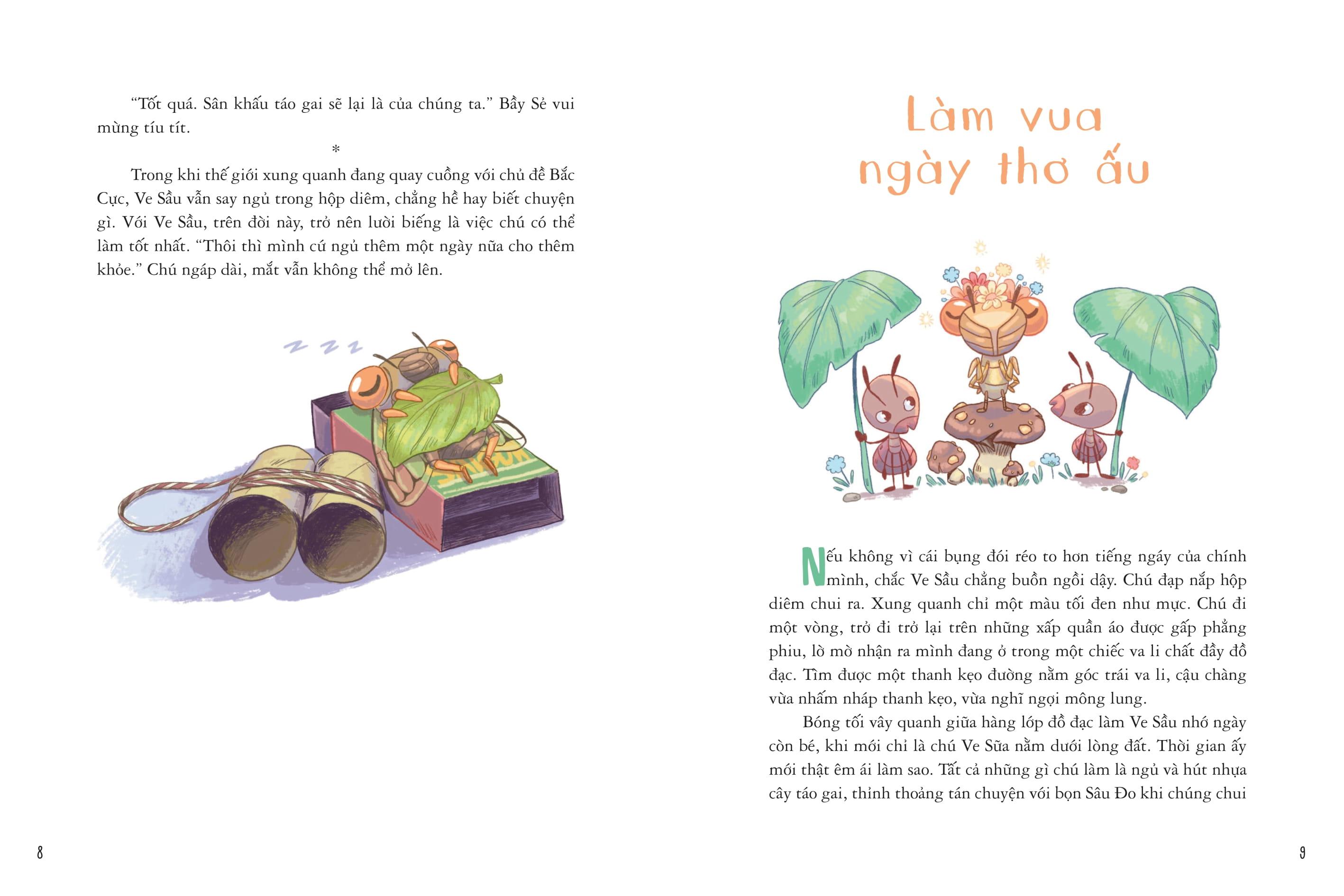 Ve Sầu sống trên cây táo gai, tận hưởng bầu không khí nhiệt đới nóng ẩm cùng các thanh âm rộn rã của mùa Hè. Thế rồi, bởi một sự cố tình cờ, Ve Sầu đột ngột nhận ra m.ình không còn ở Sài Gòn thân thuộc. Xung quanh chú giờ đây lạnh cóng, chỉ một màu trắng tuyết: Bắc Cực.
