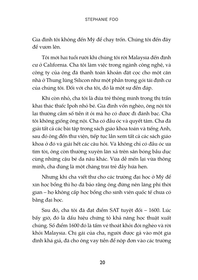 Là một nhà báo, Stephanie không chỉ giỏi kể chuyện từ bằng chứng sống – câu chuyện chân thực của chính m.ình – mà cô còn đào sâu tìm tòi, nghiên cứu mọi ngóc ngách. Từ những cuốn sách và chuyên gia tâm lý được trích dẫn, cho đến mối quan hệ của Stephanie, không chỉ với cha mẹ của m.ình mà còn từ chính nguồn cội của cô, những người họ hàng ở quê nhà Malaysia. Cộng đồng người châu Á nhập cư trong chính ngôi trường cô học, khu phố cô sống. Những lát cắt thoáng qua về cả cộng đồng người Việt ở San Jose khiến câu chuyện càng trở nên gần gũi.