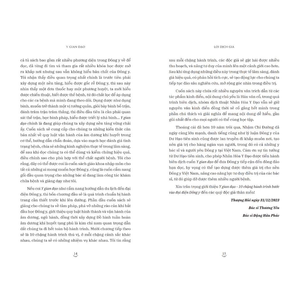 Sau khi cuốn Đông y chi lộ của Thầy Dư Hạo lần đầu tiên chính thức được xuất bản tại Việt Nam, chúng m.ình rất vui khi được giới thiệu tới bạn đọc cuốn sách thứ hai của Thầy và Thầy Trịnh Lê với tên: Y gian đạo – 10 chặng hành trình bước vào đại điện Đông y.