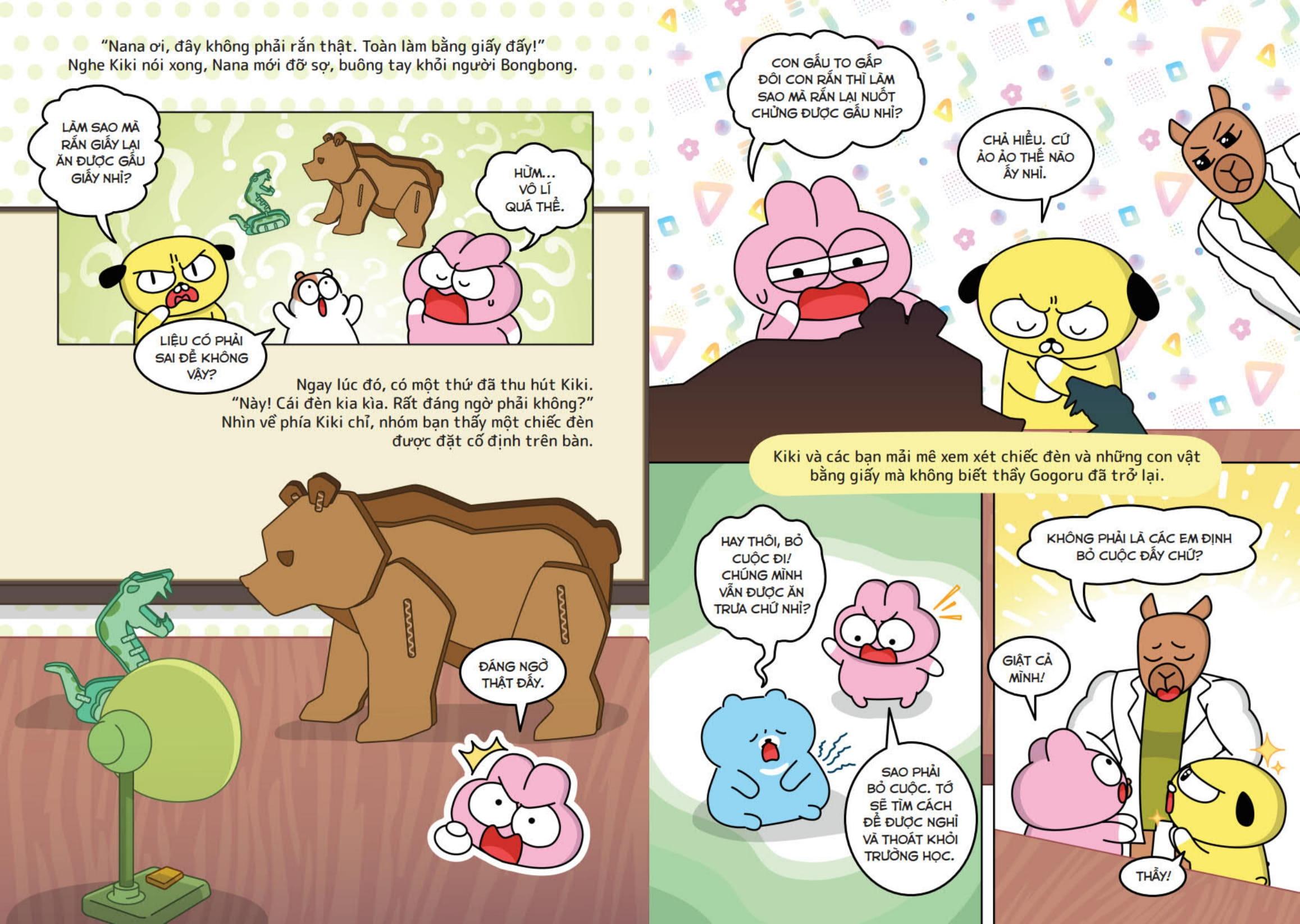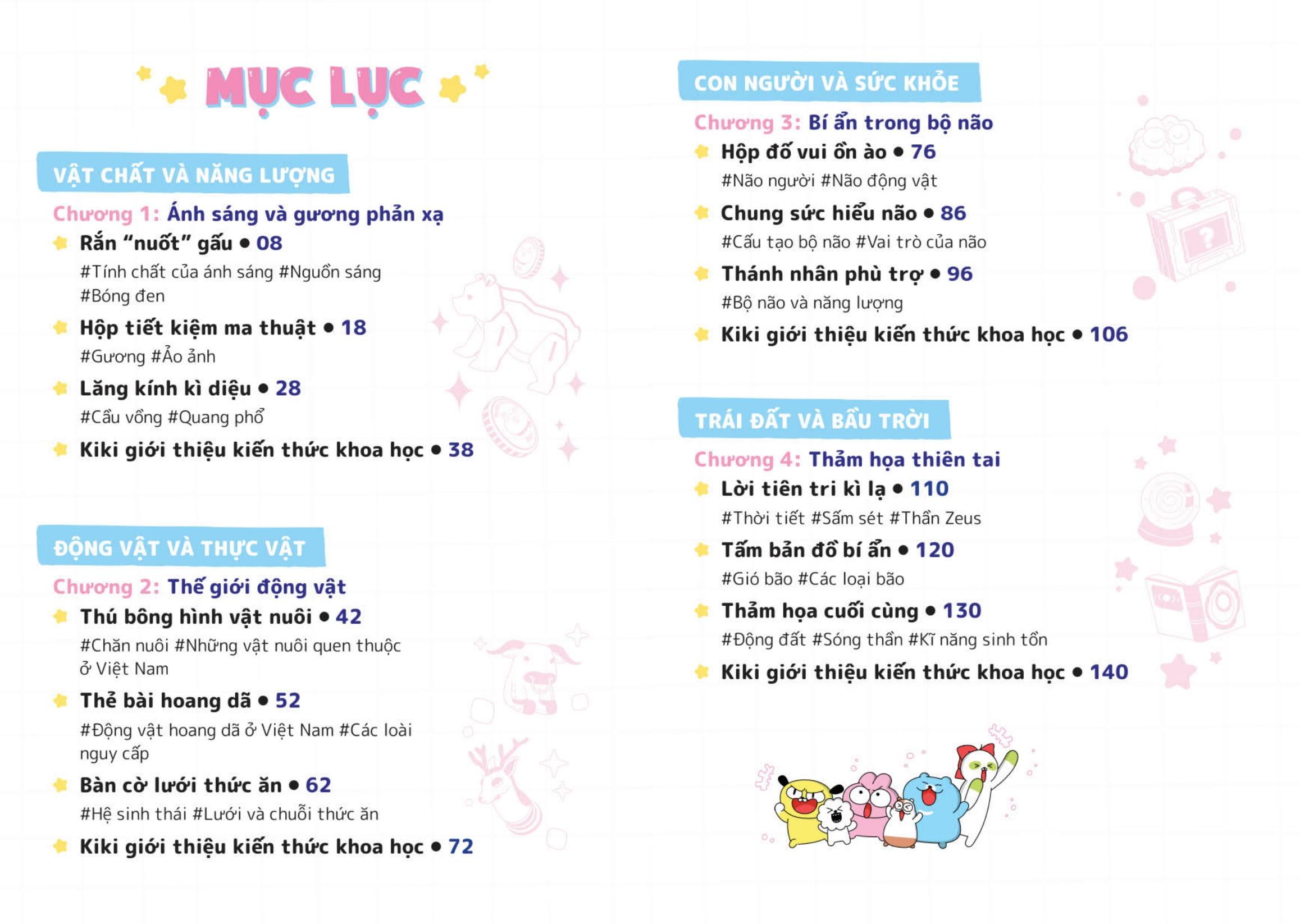 Nhóm Zookiz quy tụ những bạn nhỏ tinh nghịch mà đáng yêu: thỏ Kiki láu lỉnh, gấu Bongbong ham ăn, “hổ chó” Alex hay càu nhàu, chuột cảnh Ppuyo ngốc nghếch, lười Nana điệu đà, chó xù Pang ham vui. Theo chân Zookiz, các độc giả nhỏ sẽ bước vào những cuộc phiêu lưu kì thú và hài hước tại trường khoa học bí ẩn đồng thời học thêm nhiều kiến thức bổ ích.