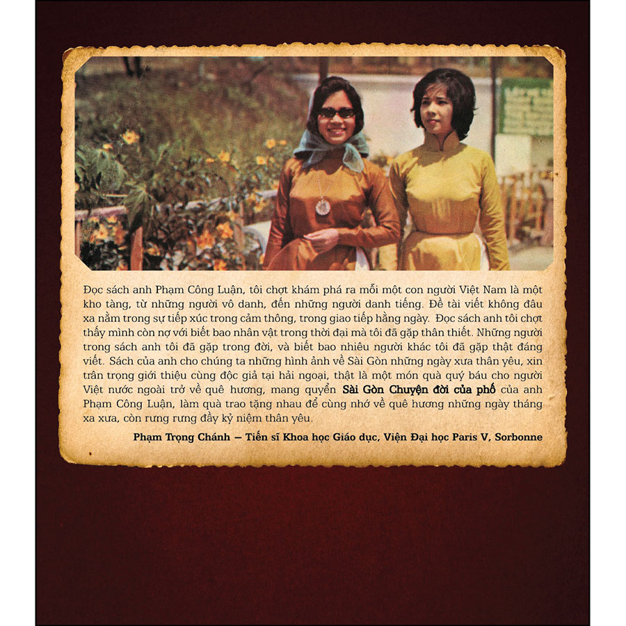 “Đọc sách anh Phạm Công Luận, tôi chợt khám phá ra mỗi một con người Việt Nam là một kho tàng, từ những người vô danh, đến những người danh tiếng. Đề tài viết không đâu xa nằm trong sự tiếp xúc trong cảm thông, trong giao tiếp hằng ngày. Đọc sách anh tôi chợt thấy mình còn nợ với biết bao nhân vật trong thời đại mà tôi đã gặp thân thiết. Những người trong sách anh tôi đã gặp trong đời, và biết bao nhiêu người khác tôi đã gặp thật đáng viết. Sách của anh cho chúng ta những hình ảnh về Sàigòn những ngày xưa thân yêu, xin trân trọng giới thiệu cùng độc giả tại hải ngoại, thật là một món quà quý báu cho người Việt nước ngoài trở về quê hương, mang quyển Sài Gòn – Chuyện Đời Của Phố của anh Phạm Công Luận, làm quà trao tặng nhau để cùng nhớ về quê hương những ngày tháng xa xưa, còn rưng rưng đầy kỷ niệm thân yêu.” - T.S Phạm Trọng Chánh