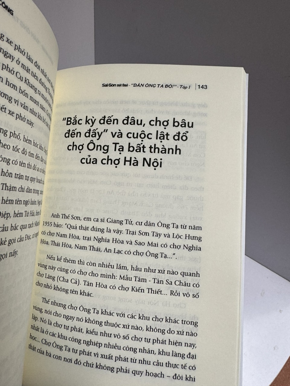 Vì là tập đầu tiên trong bộ sách nên tác giả Cù Mai Công đã dành gần 50% thời lượng để xác định địa lý vùng Ông Tạ cho bạn đọc yêu Sài Gòn dễ hình dung, bởi lẽ “Ông Tạ” vốn là tên dân gian chứ không phải địa giới hành chính. Anh đã đưa ra các tiêu chí rất thuyết phục: xem dân đi chợ nào, học trường nào và đi lễ ở đâu… để xác định ranh giới của Ông Tạ tới đâu, hoặc định nghĩa thế nào là một “người Ông Tạ”. Nhờ vậy, độc giả dễ theo dõi mạch câu chuyện của anh ở những tập 2 và 3 mà không bị “lạc lối” giữa muôn vàn nhân vật ở Ông Tạ.