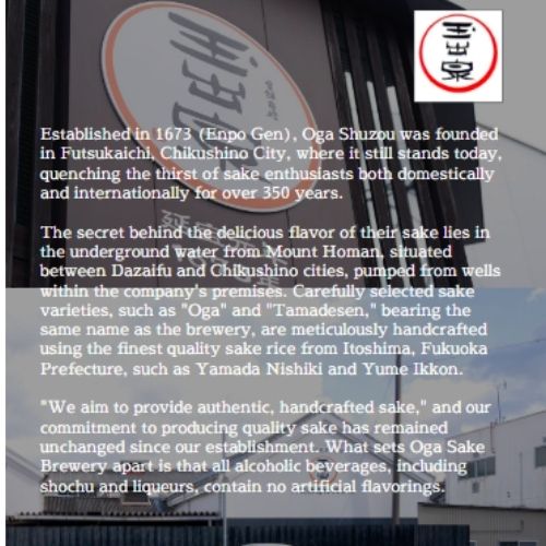Tamade Junmai đã thắng giải thưởng lớn tại cuộc thi Reiwa 4 Sake được tài trợ bởi cục thuế khu vực Fukuoka.Loại r'ượu sake Dry được nấu bằng nguồn nước ngầm từ núi Homan, hương gạo sake nồng nàn lan t...