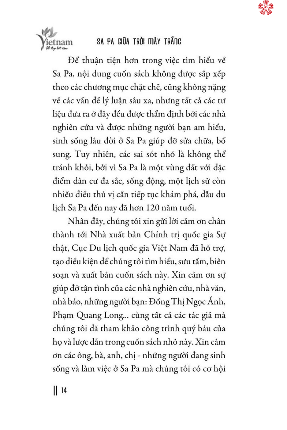 Cuốn sách Sa Pa giữa trời mây trắng do Nhà xuất bản Chính trị quốc gia Sự thật xuất bản lần này đã được hai tác giả Nguyễn Thái Bình và Phạm Hoàng Hải chỉnh sửa, bổ sung nhiều nội dung mới so với ấn bản năm 2003 với mục đích quảng bá rộng rãi hơn nữa vẻ đẹp của Sa Pa đến du khách trong và ngoài nước, cũng như đem lại cho bạn đọc những cảm nhận về một Sa Pa tươi mới, đa sắc, phát triển nhưng vẫn giữ được vẻ đẹp trong trẻo, hiền hòa của mảnh đất và con người vùng Tây Bắc Tổ quốc.