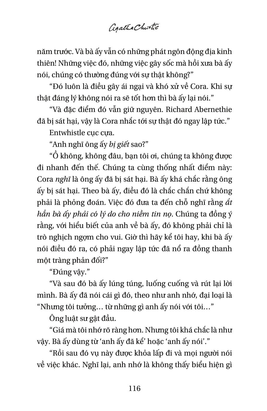Cốt truyện căng não, những manh mối được cài cắm khéo léo, một kết cục sửng sốt và thật tài tình, lại một lần nữa Agatha Christie sẽ làm bạn đọc phải say mê.