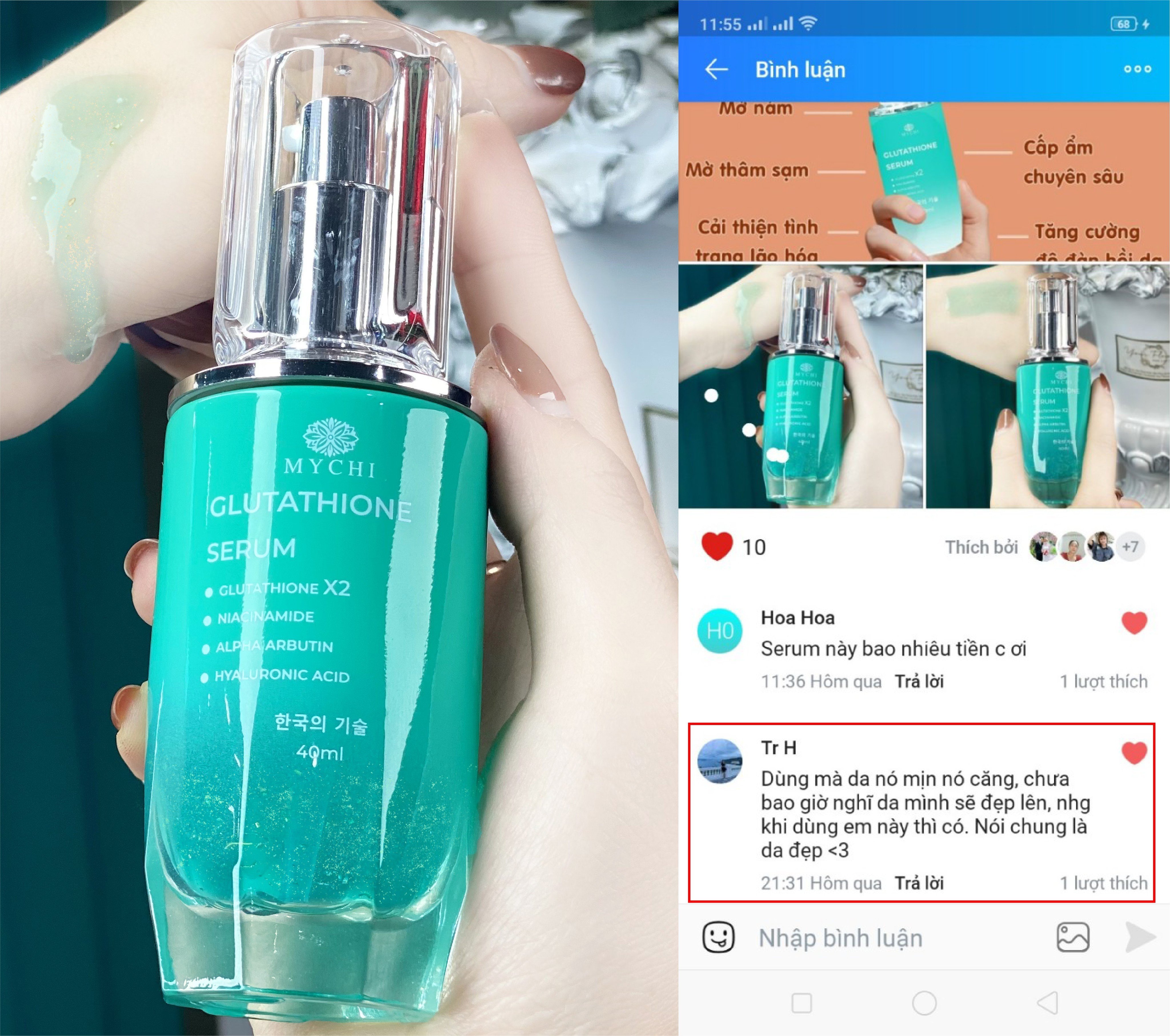 Serum Mychi - Serum cấy trắng lá vàng 24k glutathione 1.CÔNG DỤNG - Dưỡng da trắng sáng, mờ thâm sạm, giúp đồng đều sắc tố da - Chống oxy hóa da, cải thiện tình trạng