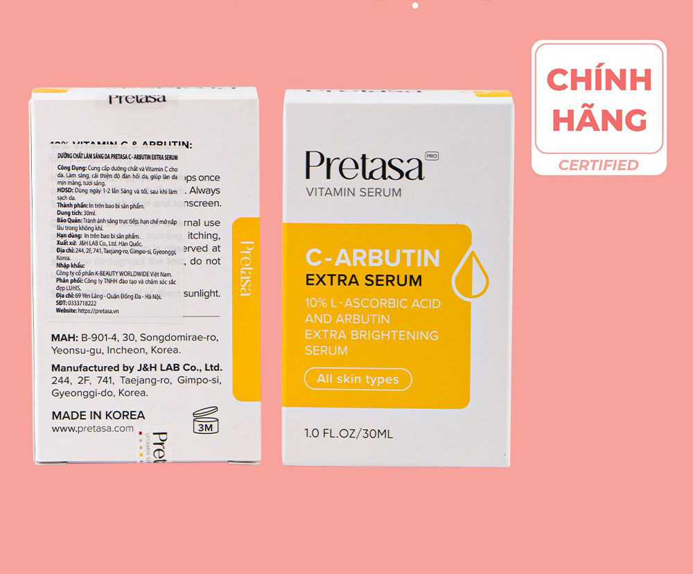 Ở bất kì thời đại nào thì nhu cầu làm đẹp luôn được đặt lên hàng đầu, sự hiện diện của làn da trắng sáng giúp chị em luôn tươi trẻ và tự tin hơn trong cuộc sống. Nhưng do môi trường làm việc nhiều khói bụi và các sản phẩm chăm sóc da không hiệu quả nên làn da dễ bị sạm, xỉn màu và lão hóa sớm. Ngoài ra, hậu quả của các vết thâm sau mụn là những vết thâm xấu xí, khó có thể hết trong thời gian ngắn. Hơn nữa khi bước sang tuổi 25, làn da của bạn sẽ bắt đầu sạm đen và xuất hiện các nếp nhăn do quá trình lão hóa da. Vậy đâu là giải pháp cho tình trạng da này? Trong nhiều năm qua, Serum đã trở thành sản phẩm dưỡng da “thần thánh” được chị em tin dùng. Serum được “yêu thích” đến vậy không phải ngẫu nhiên mà do những lợi ích vượt trội trong việc chăm sóc và cung cấp dưỡng chất cho da. Hầu hết các chị em đều thừa nhận rằng sau một thời gian sử dụng serum, các vấn đề về da như mụn, nám, tàn nhang, thâm do mụn để lại… không những giảm mà da còn trở nên căng bóng, mịn màng. Pretasa C Arbutin Extra SerumHiện nay trên thị trường có hàng trăm loại serum. Giữa vô vàn sản phẩm với sự cạnh tranh khốc liệt, Pretasa Vitamin C Arbutin Brightening Serum vẫn được lòng nhiều người vì phù hợp với nhiều loại da, cải thiện rõ rệt làn da không đều màu. Công dụng tuyệt vời của Pretasa vitamin C Arbutin: