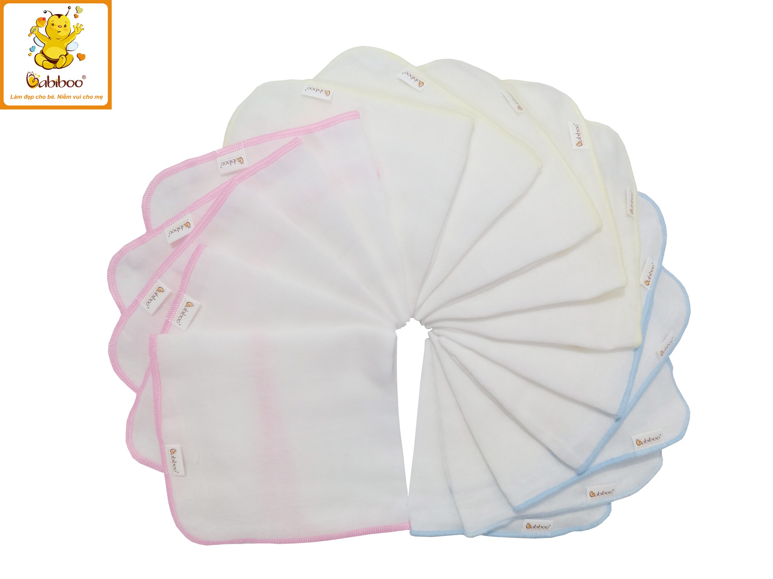 Khăn gạc sơ sinh G10 nhỏ vắt sổ BABIBOO - BK01 Với sản phẩm này, mẹ có thể dùng để thấm sữa, rửa mặt, lau miệng, tắm rửa, vệ sinh cho trẻ sơ sinh hay