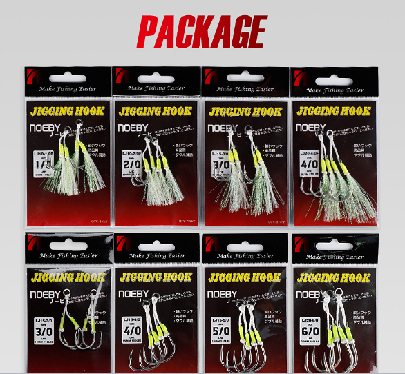 ● Được làm bằng thép không gỉ siêu bền, lớp hoàn thiện chống ăn mòn, khả năng bị phân tách trong nước gần như bằng 0 ● Tiếng Nhật P.E. dây hỗ trợ có lõi nylon bên trong để tăng thêm độ cứng ● Được làm bằng thép carbon cao, vật liệu cao cấp giúp móc hỗ trợ chắc chắn hơn, đáng tin cậy hơn và chống ăn mòn. Thiết kế khe hút máu ở đầu lưỡi câu giúp bắt cá dễ dàng ● Tuyệt vời cho câu cá jigging dọc và câu cá nước mặn; Da cá phát sáng cũng phù hợp để câu cá đêm và câu cá nước sâu [Mẫu] Móc hỗ trợ đôi Leisure Jigging [Kích thước móc] 1/0,2/0,3/0,4/0