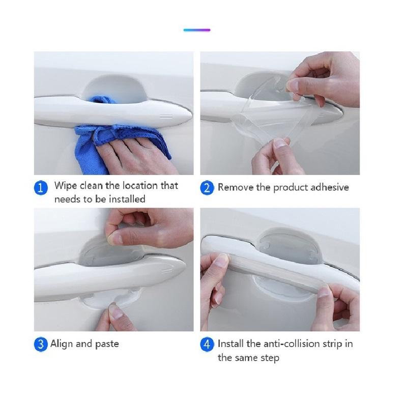 Mô tả sản phẩm Bộ 4 miếng dán chống xước tay cửa xe ô tô 206239 - Bộ 4 miếng dán bảo vệ tay nắm cửa ô tô là phụ kiện ô tô tiện ích