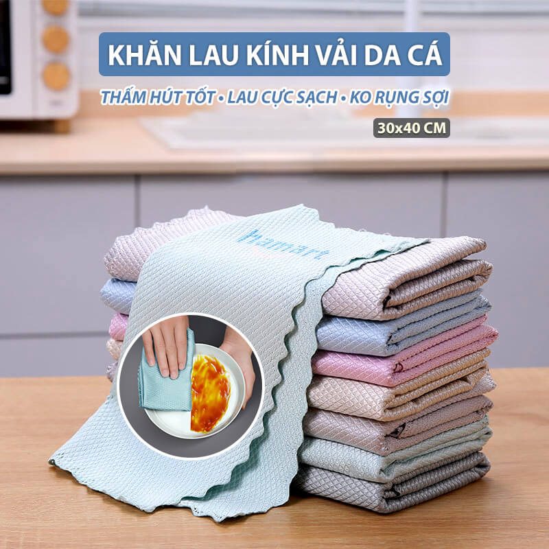 Mua tại TiktokKhăn Lau Bếp Đa Năng Vải Da Cá được làm từ sợi Superfine Fiber, độ thấm hút nước cao, không để lại vệt nước hay vệt lau trên bề mặt. Sợi Superfine Fiber còn có tính chất bền, không có bụi vải nên đặc biệt phù hợp để lau gương kính thuỷ tinh rất hiệu quả & tiện lợi.