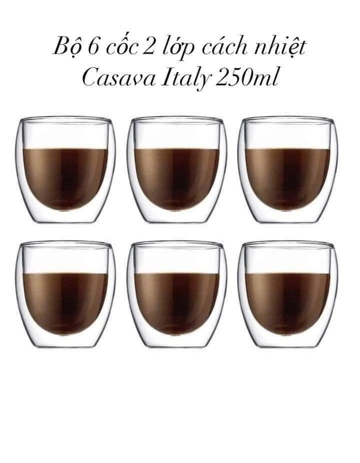 ✨Set 6 cốc PODIUM 2 lớp cách nhiệt Casava Italy 250ml Hàng chính hãng