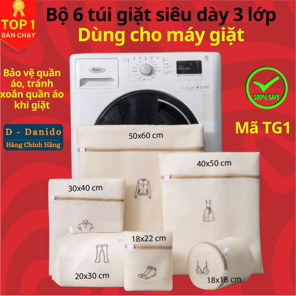 Bộ 6 túi giặt siêu dày 3 lớp cao cấp TG1 Combo 6 túi lưới bảo vệ quần áo Dùng cho máy giặt Siêu bền tiện dụng chính hãng miDoctor