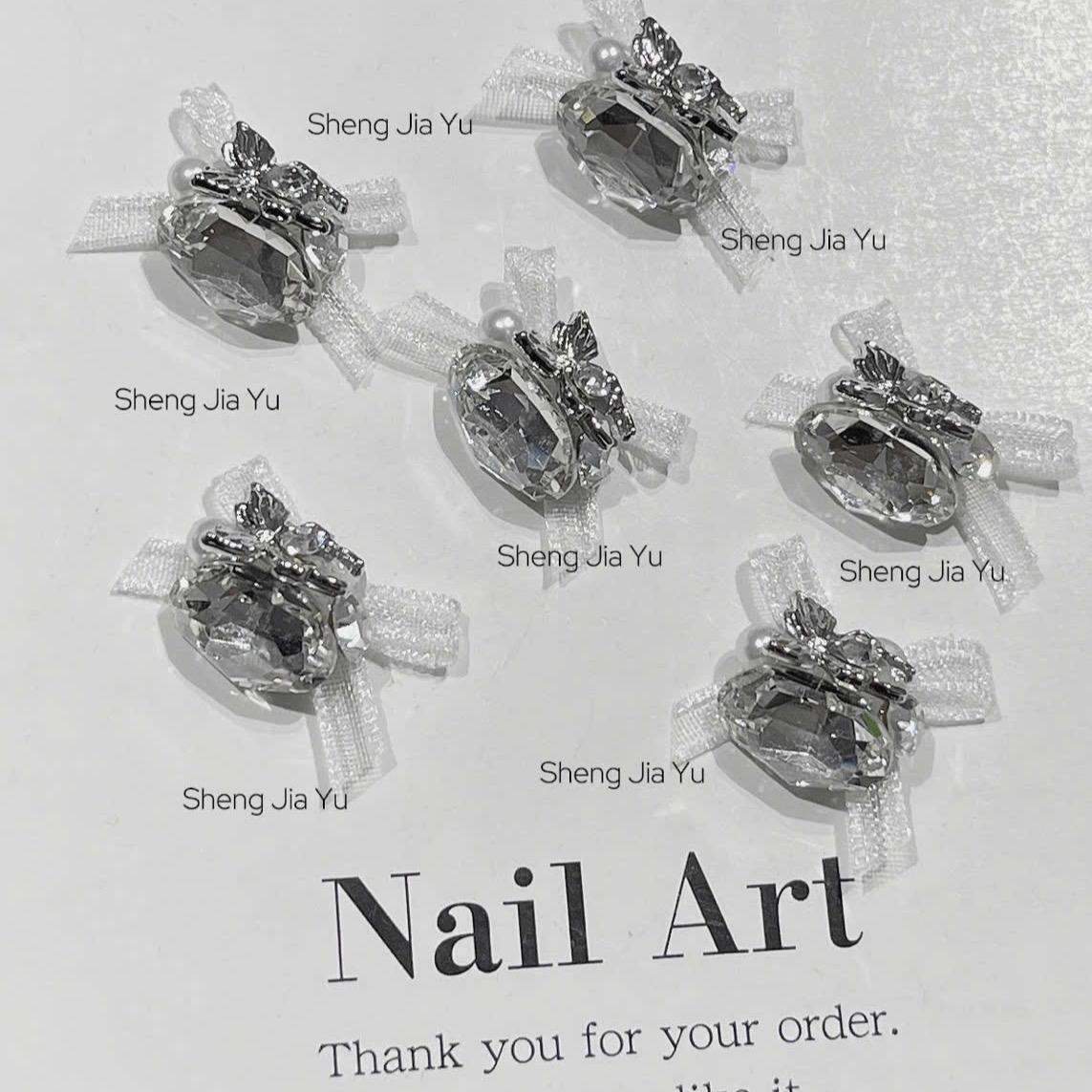 ✨Set 6 Viên Charm Đá Khối Siêu Sáng Mix Nơ Voan Làm Nail Sang Chảnh Sheng Jia Yu, Charm Đá Viên Hình Trứng Có Nơ Đính Móng Màu Hồng Trắng Xanh Women Nữ