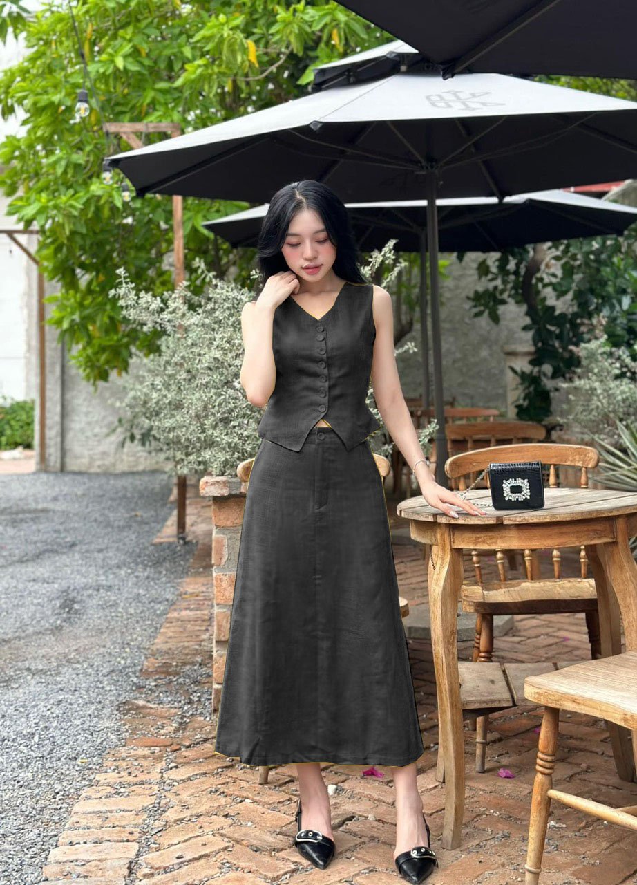 Mua tại TiktokSet áo ghi lê 6 nút kèm chân váy dài Mô tả Size S: sản phẩm vòng eo rộng 64cm - 66cm, vòng ngực rộng 84cm-86cm, vòng mông rộng 86cm-88cm Size M: sản phẩm vòng eo rộng 68cm- 70cm, vòng ngực rộng 88cm-90cm, vòng mông rộng 88cm-90cm Size L: sản phẩm vòng eo rộng 72cm- 74cm , vòng ngực rộng 92cm-94cm, vòng mông rộng 92cm-94cm Size XL: sản phẩm vòng eo rộng 76cm- 80cm, vòng ngực rộng 94cm-96cm, vòng mông rộng 94cm-96cm Màu sắc: vàng, hồng, đen Chất liệu: cotton lạnh