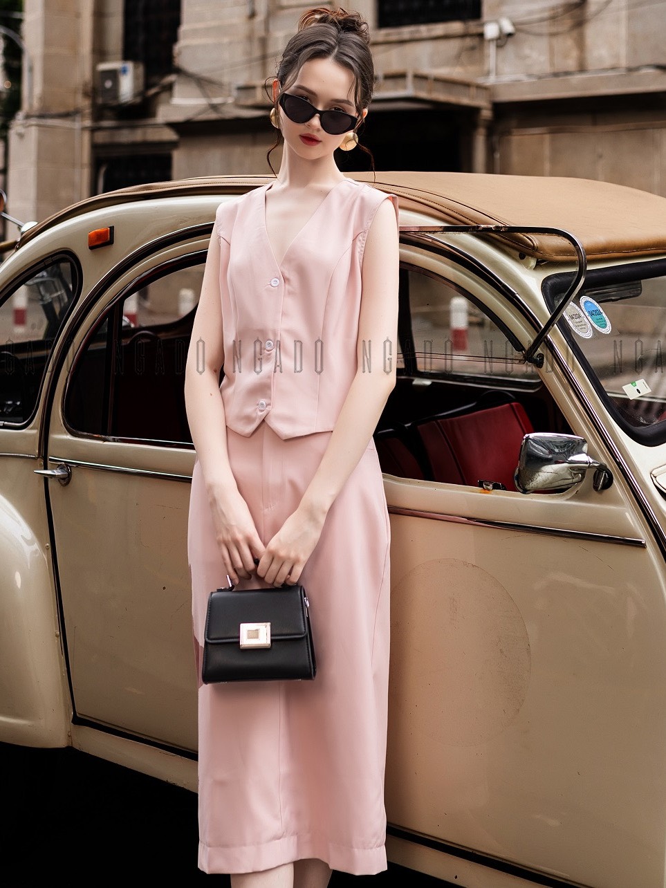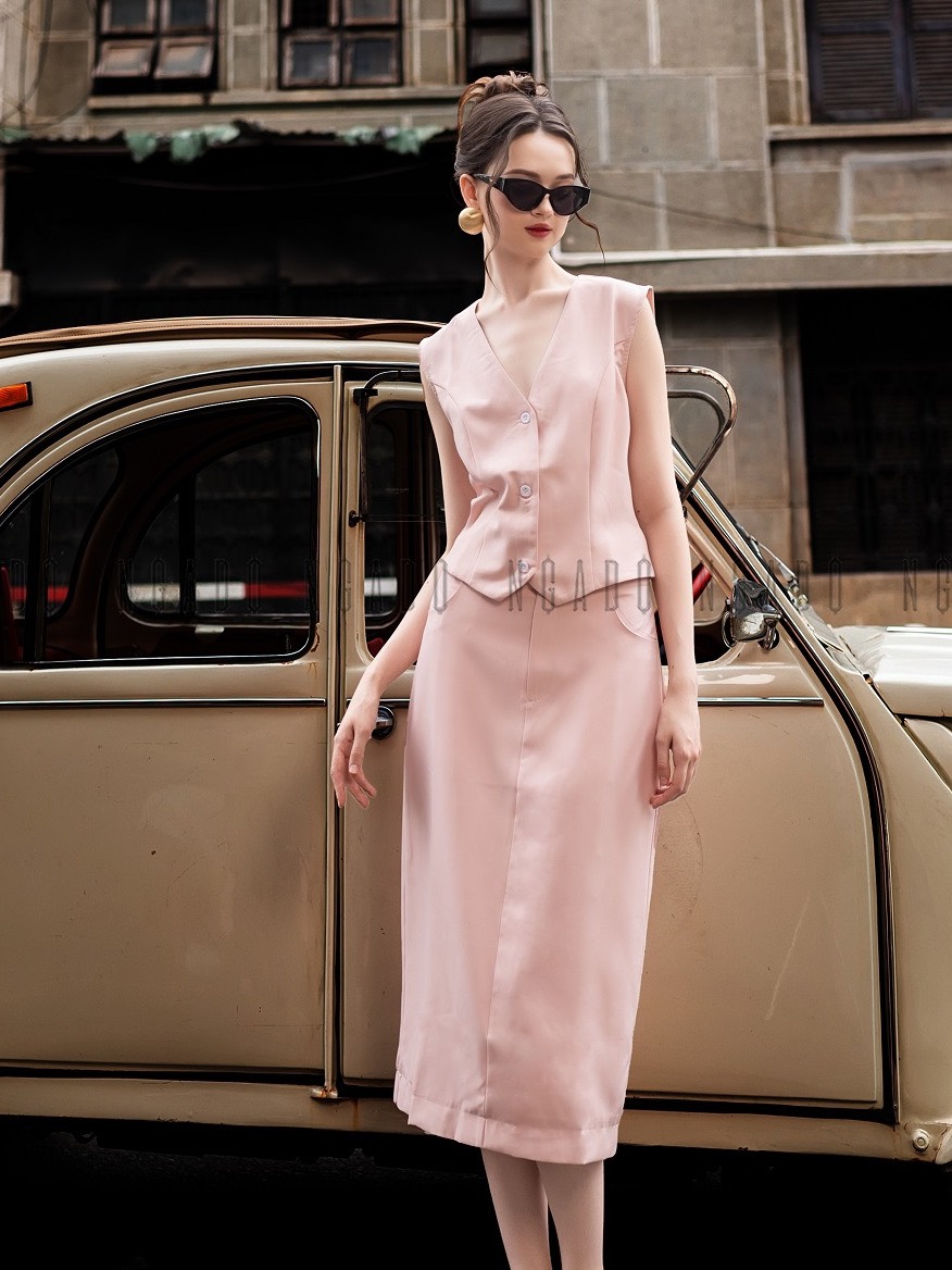 Tinh giản mà sang trọng với bản phối áo gile cùng Chân váy lụa hiện đại #hagoo #phoidodep #fashion