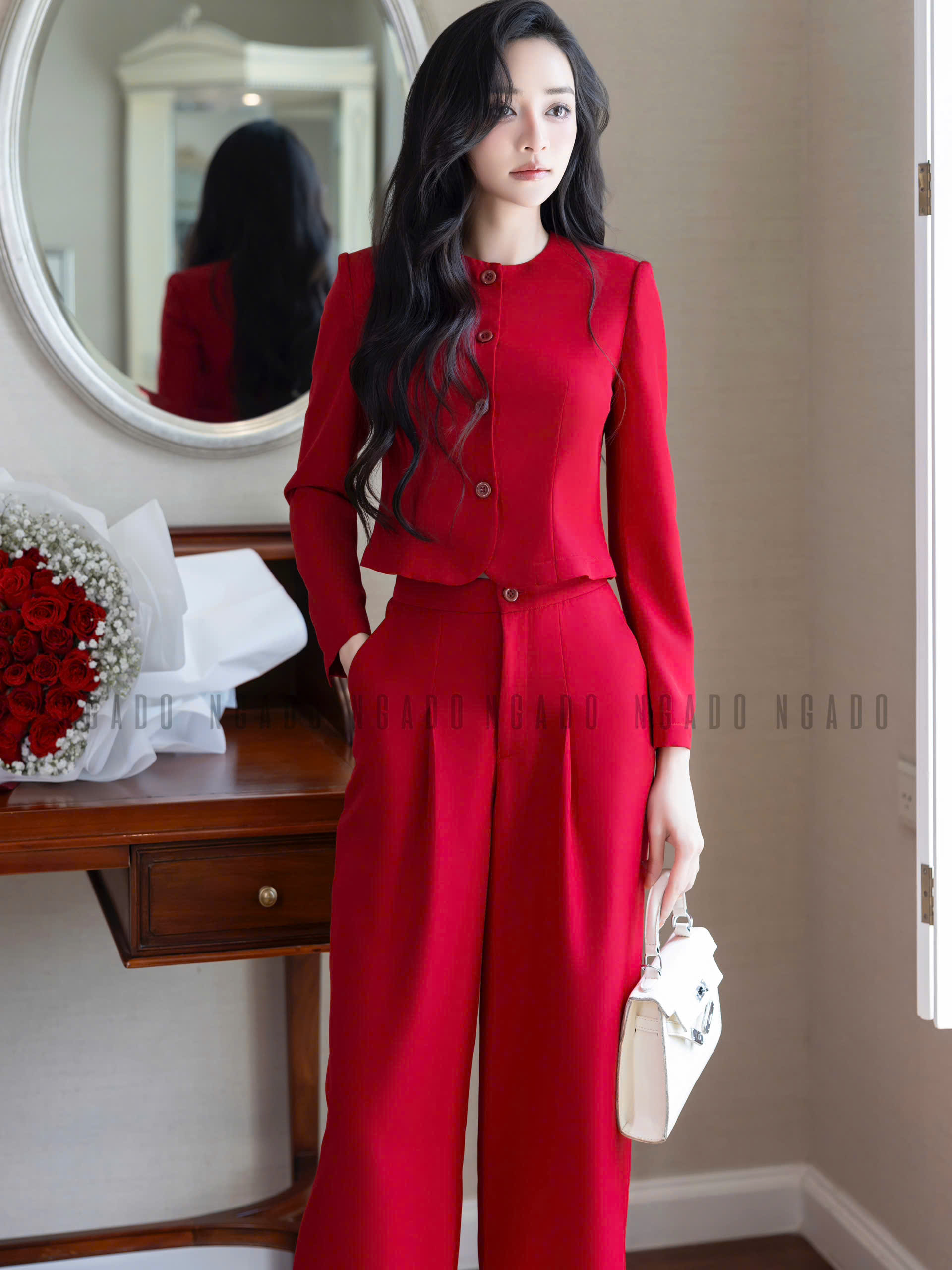✨Set áo quần đỏ đô cổ tròn NGADO , set áo quần dài , set công sở , dạo phố