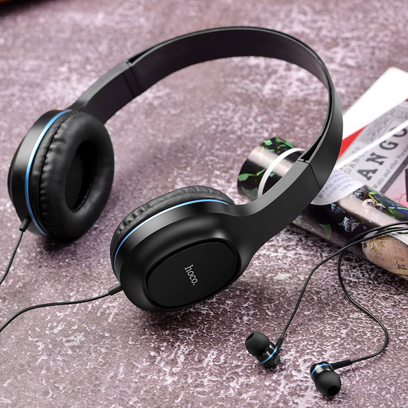 Set/ Combo/ Bộ 2 tai nghe - Hoco W24 - Tai nghe chụp tai/ Monitor Headphones và Tai nghe nhét tai/ Earphones - Jack 3.5mm, Loa ngoài 40mm, Mic đàm thoại, Dây dài 1.2m, Mút