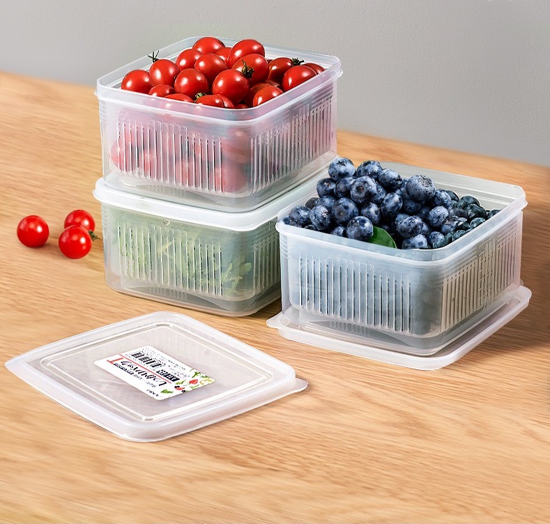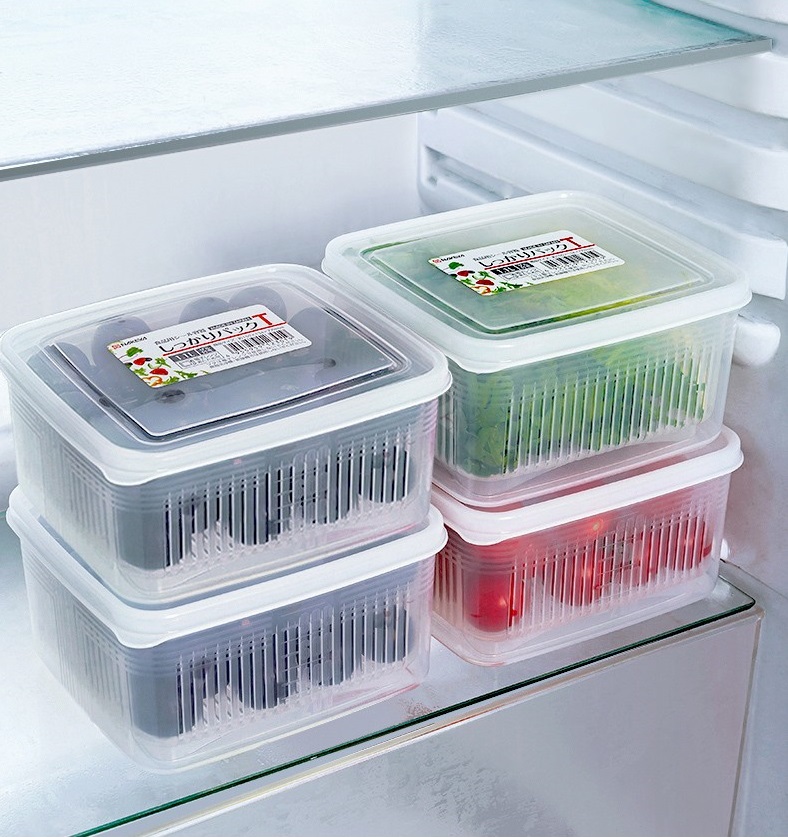• Hộp có lớp giá lót bên trong giúp cho thực phẩm bảo quản được thoát nước, ráo nước nhanh chóng