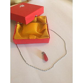 ✨Set Mặt dây chuyền Hồng Ngọc Malaysia cao 2cm Hình Giọt nước rơi - Dây chuyền hợp kim mạ Titanium không rỉ không bay màu dài 45 cm và hộp đựng cung hỷ, Thiết kế đơn giản.