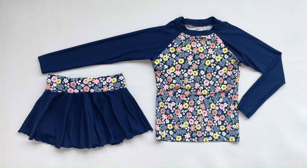 - Mẫu đồ bơi mới nhất cho các bạn nữ thích sự trẻ trung kín đáo mà vẫn thu hút khi đi biển, đi bơi. - Áo dáng ngắn tay phối hoạ tiết trẻ khoẻ,