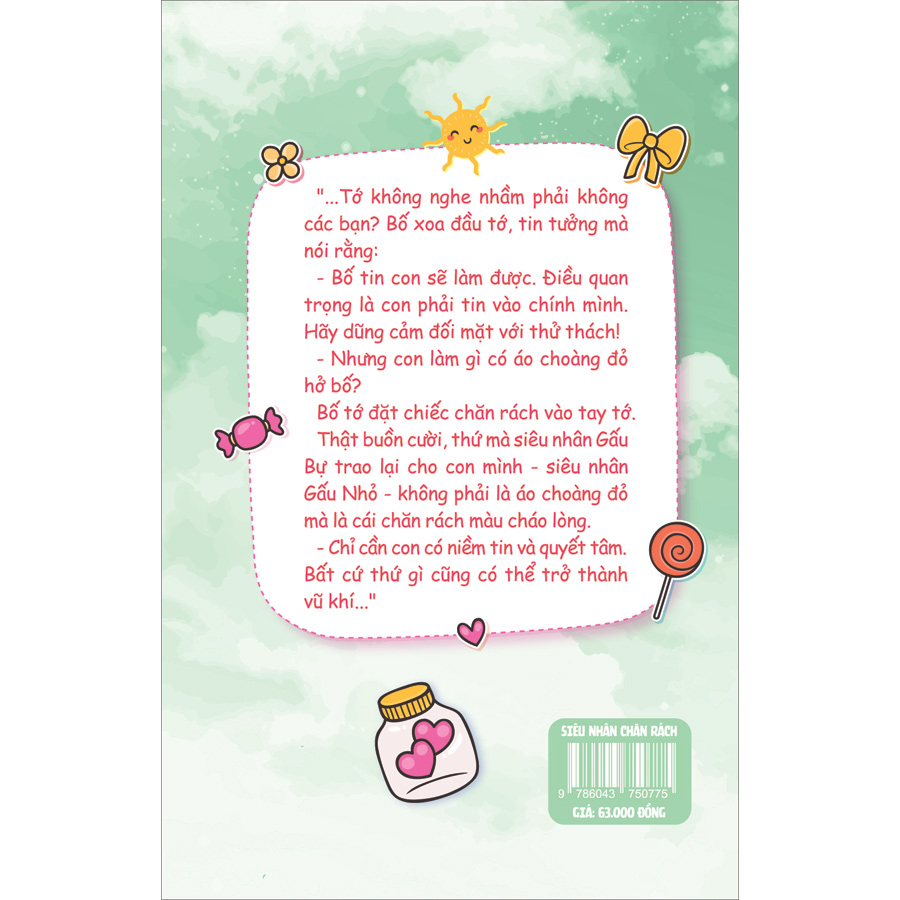 Siêu nhân chăn rách là tập truyện ngắn dành cho thiếu nhi, gồm 10 truyện có kèm tranh minh họa vui nhộn, xoay quanh 10 gia đình khác nhau trong những khung cảnh bình dị và gần gũi với độc giả nhí. Sách mang lại những thông điệp yêu thương, dạy trẻ tự tin, tự lập, biết sẻ chia, đồng cảm với mọi người – những điều quan trọng nuôi dưỡng tâm hồn cao đẹp, để các bạn đọc nhỏ tuổi trở thành người tử tế khi trưởng thành.