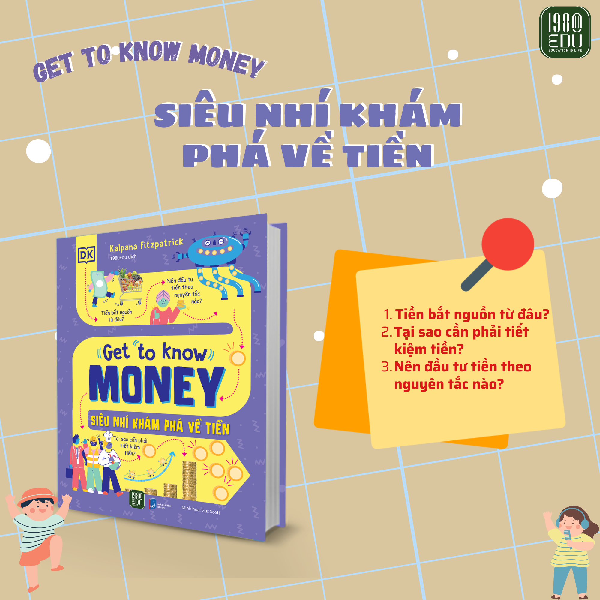 Chi tiêu, tiết kiệm, đầu tư và rất nhiều chủ đề khác về tiền sẽ được khám phá trong cuốn sách các bạn nhỏ đang cầm trên tay. “GET TO KNOW MONEY - SIÊU NHÍ KHÁM PHÁ VỀ TIỀN” là cuốn cẩm nang tài chính siêu thú vị. Cuốn sách sẽ giúp các bạn nhỏ làm quen với tiền, học cách chi tiêu, trang bị các kỹ năng quản lý tiền bạc và bắt đầu lên kế hoạch tài chính cho tương lai ngay lúc này.