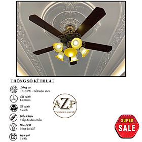 Siêu Sales QUẠT TRẦN AZP- 5 CÁNH GỖ , CÔNG XUẤT 50W, CÓ REMOTE- Hàng Nhập Khẩu Động cơ: DC - 50W - Tiết kiệm điện Sải Cánh: 1400MM Chất Liệu Cánh: gỗ Điều khiển: 6