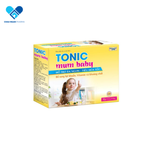 Siro cho bé TONIC MUM BABY với công thức kết hợp hàng loạt enzym tiêu hóa , các vitamin nhóm B, acid amin, chất xơ, thymomodulin, DHA .... kích thích tiêu hóa , tăng cường