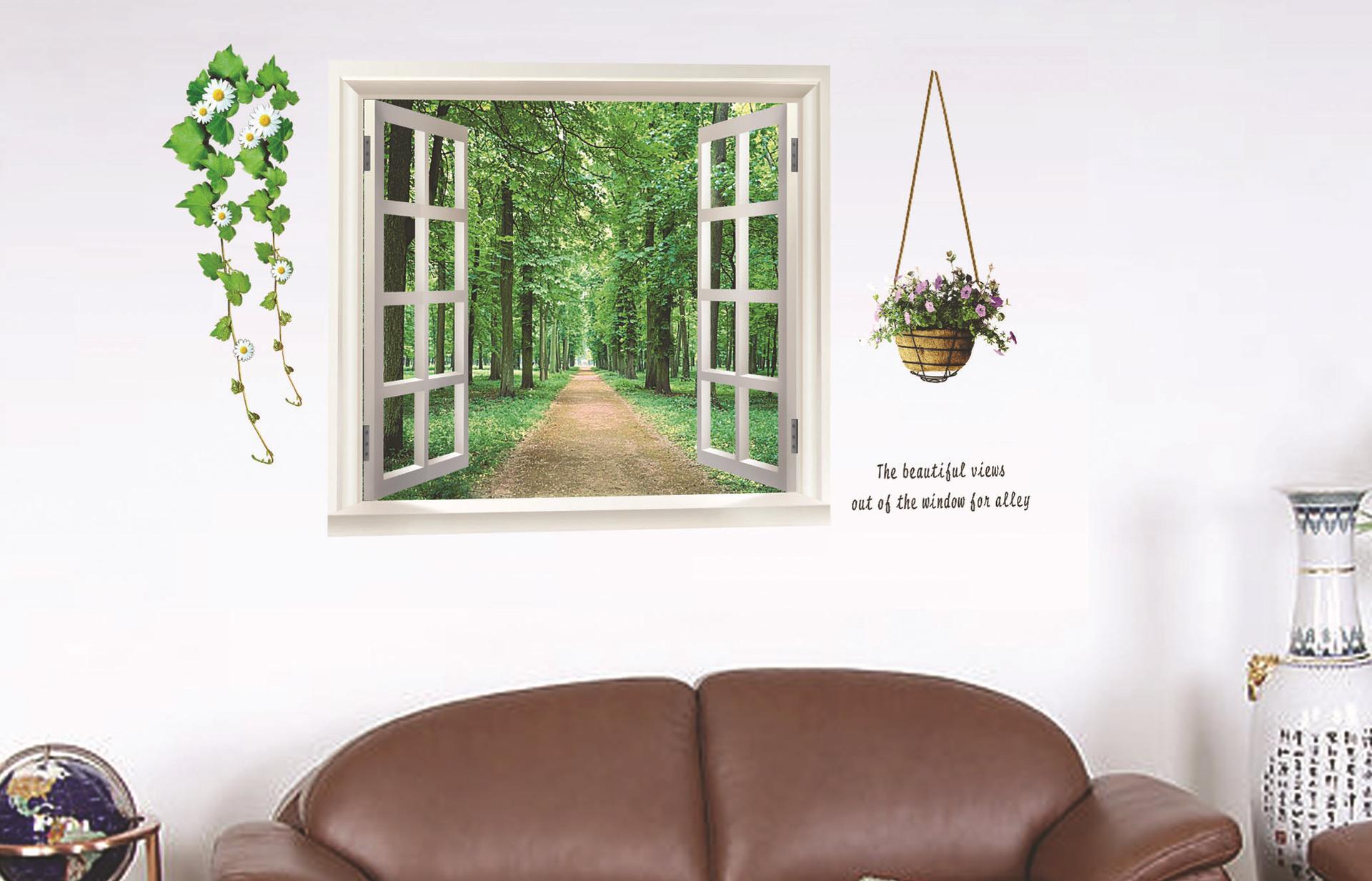 ✨[ Size Lớn ] Decal dán tường kết hợp Bụi Tre - Cửa Sổ - Chân Tường Hoa AM9104-AY701-AY823