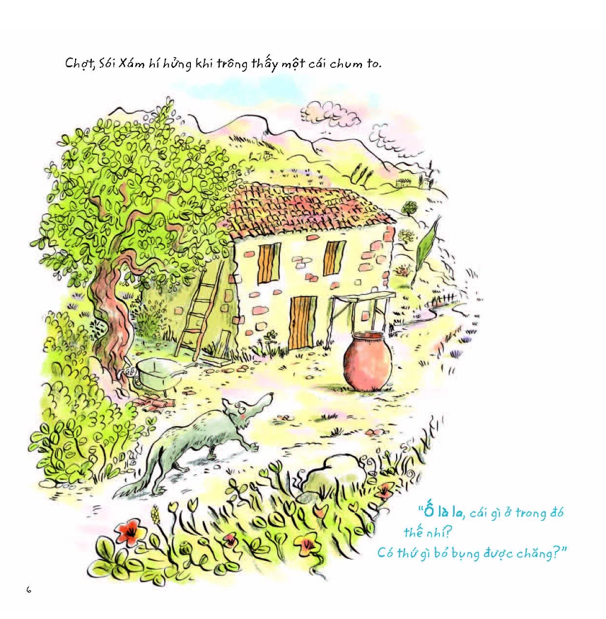 Sáng nay Sói Xám bỗng hóa thành xanh lét từ mõm đến đuôi. Trông nó mới kì quặc làm sao!