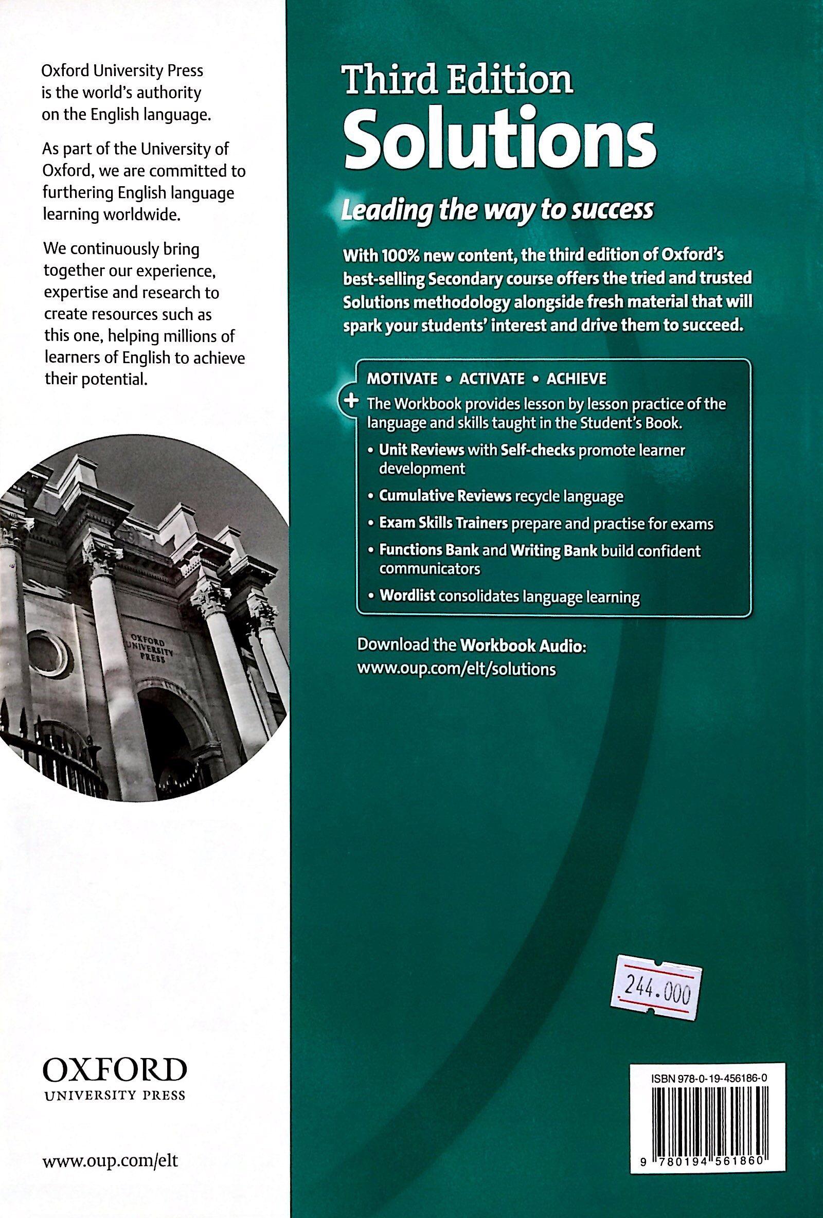 With 100% new content, the third edition of Oxford's best-selling secondary course offers the tried and trusted Solutions methodology alongside fresh and diverse material that will spark your students' interest and drive them to succeed.