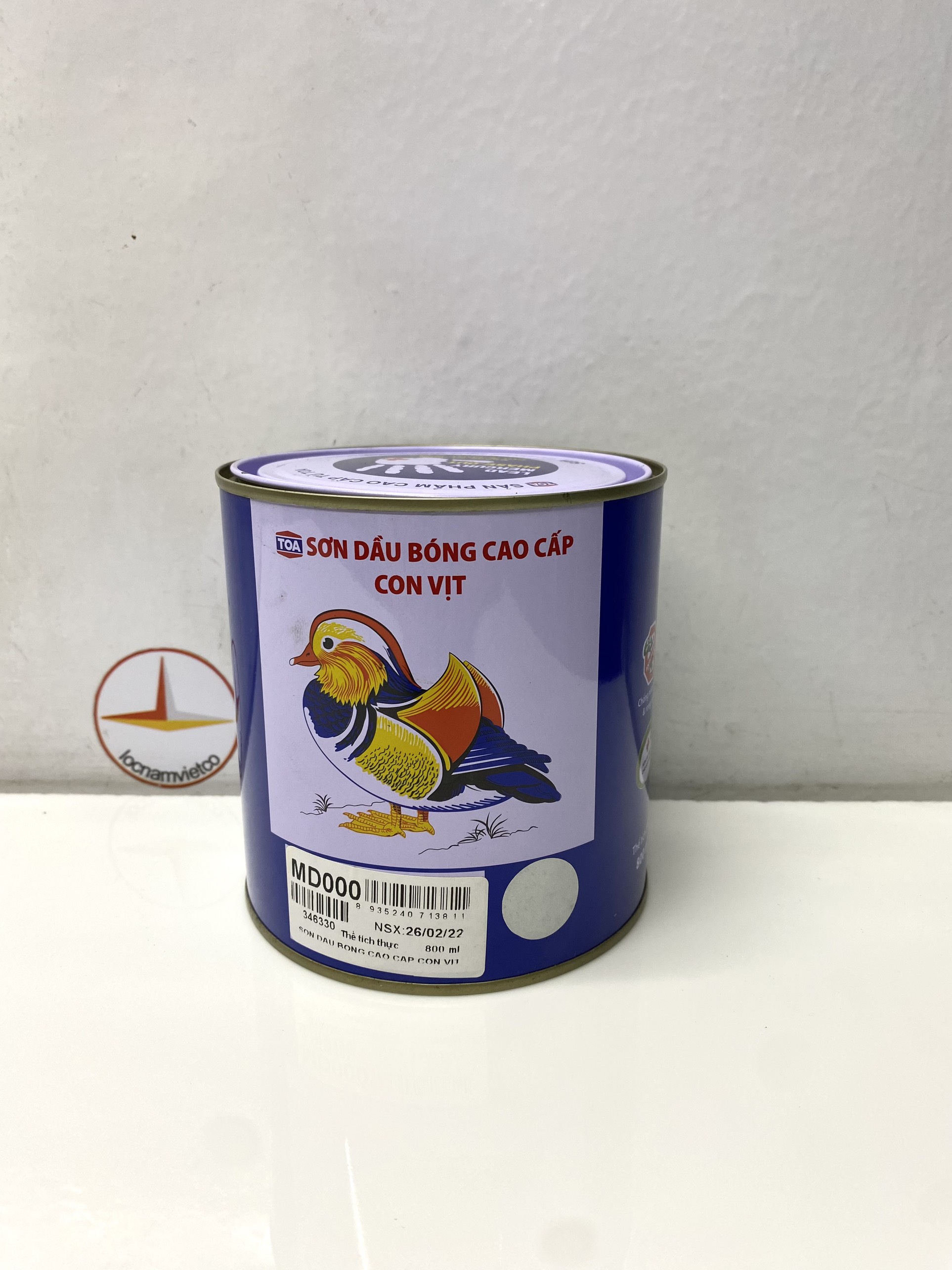 Mua tại TiktokSơn dầu cao cấp Toa hiệu Con Vịt màu bạc MD000 _800ML Sơn dầu bóng cao cấp Con Vịt (Mandarin Duck) là loại sơn Alkyd chất lượng cao, không sử dụng Chì & chất gây hại, là loại sơn an toàn cho sức khoẻ với các tính năng: Khô nhanh, màng sơn bóng đẹp, độ phủ cao, chống nấm mốc, màu sắc tươi đẹp.